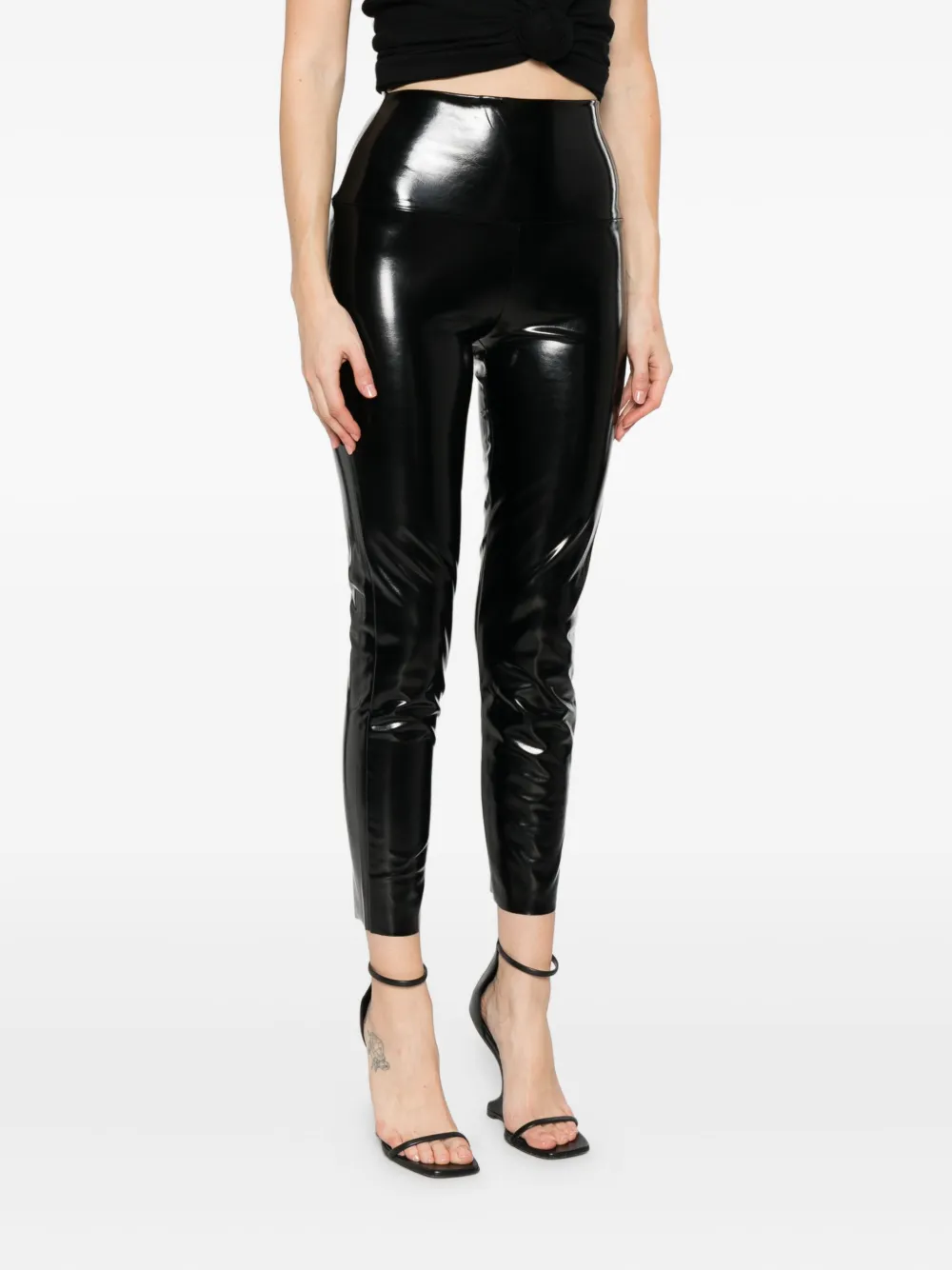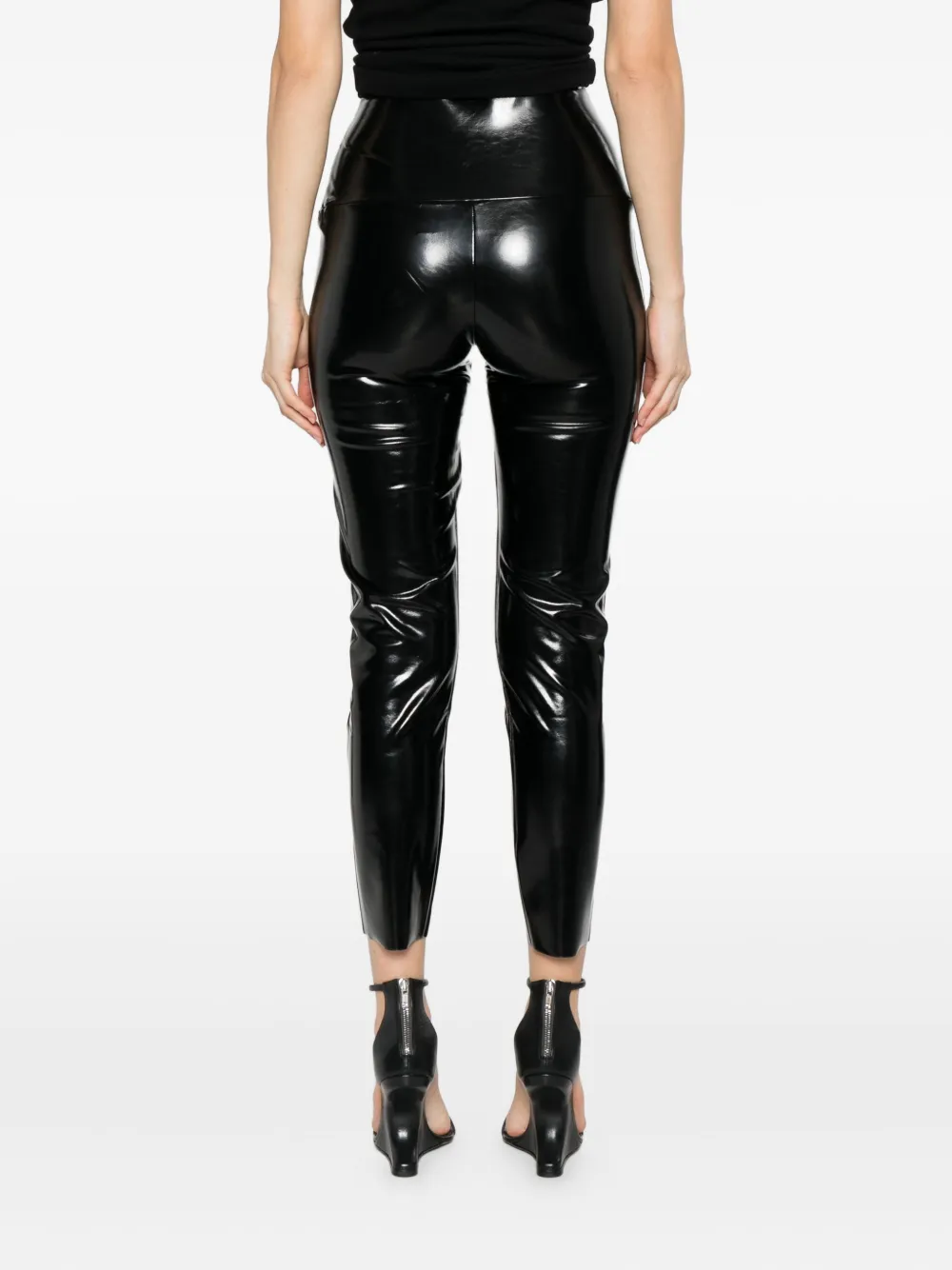 Черные, с высокой талией, облегающие брюки, глянцевая отделка