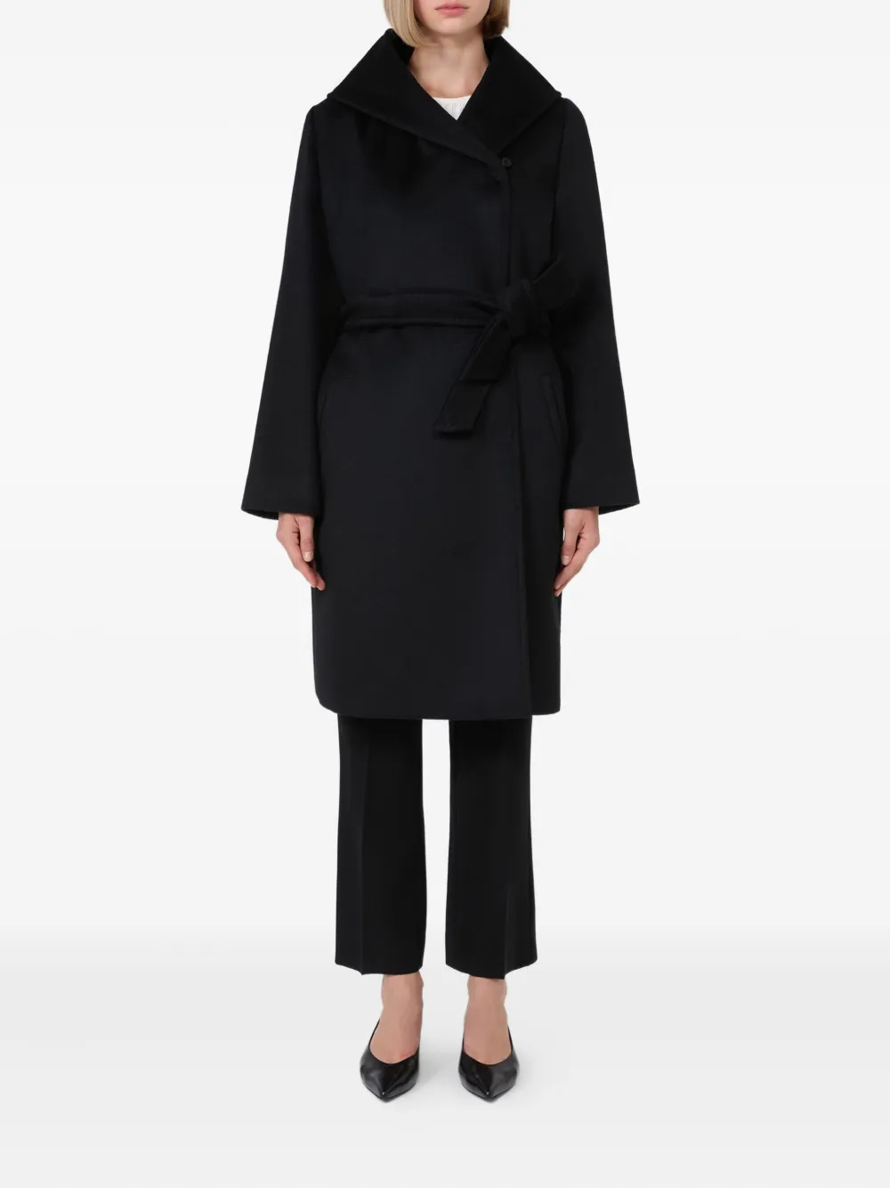 Пальто с капюшоном и поясом MAX MARA, черный