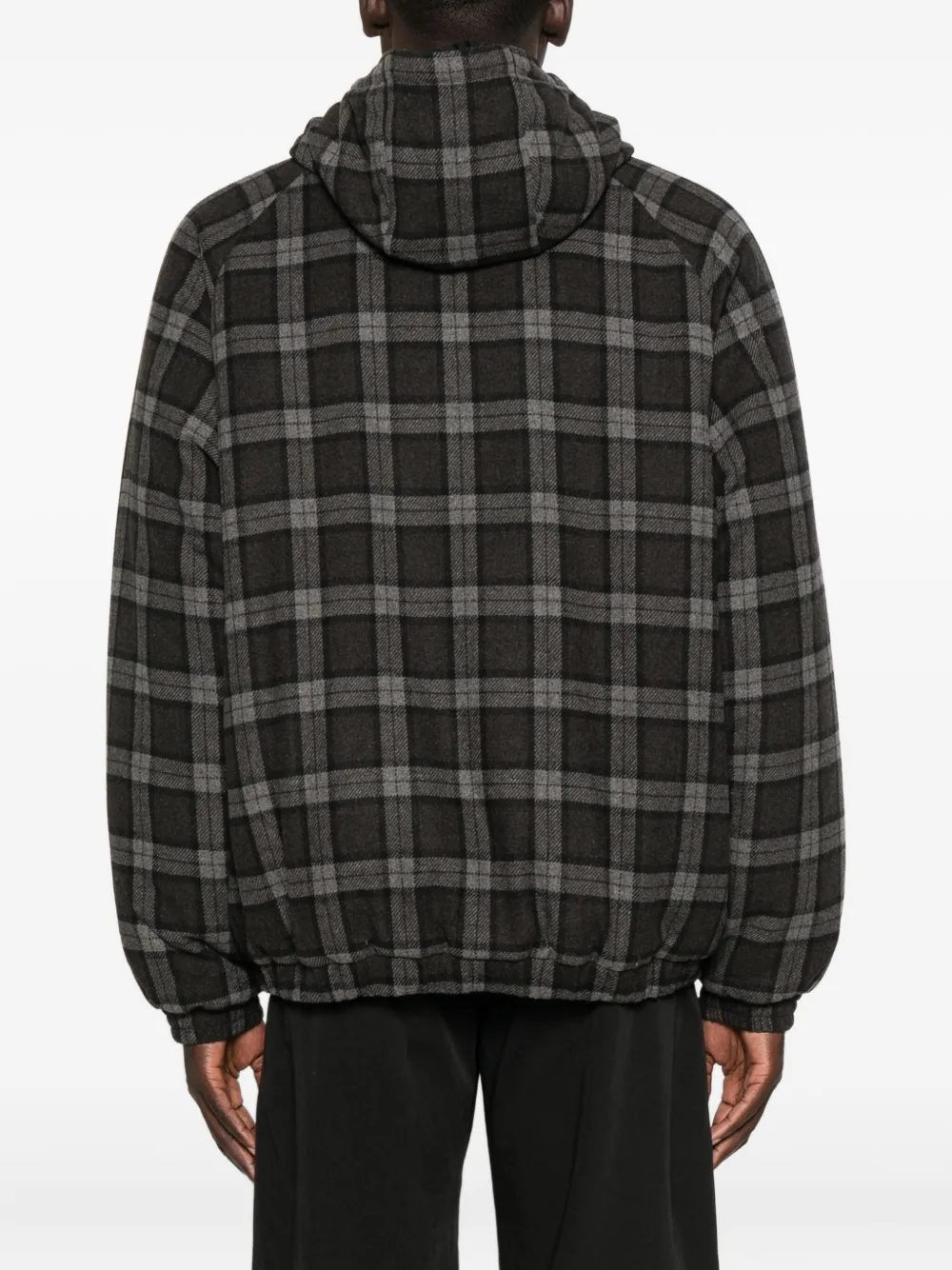 Темно-серый клетчатый узор, капюшон, застежка-молния спереди, эластичные манжеты