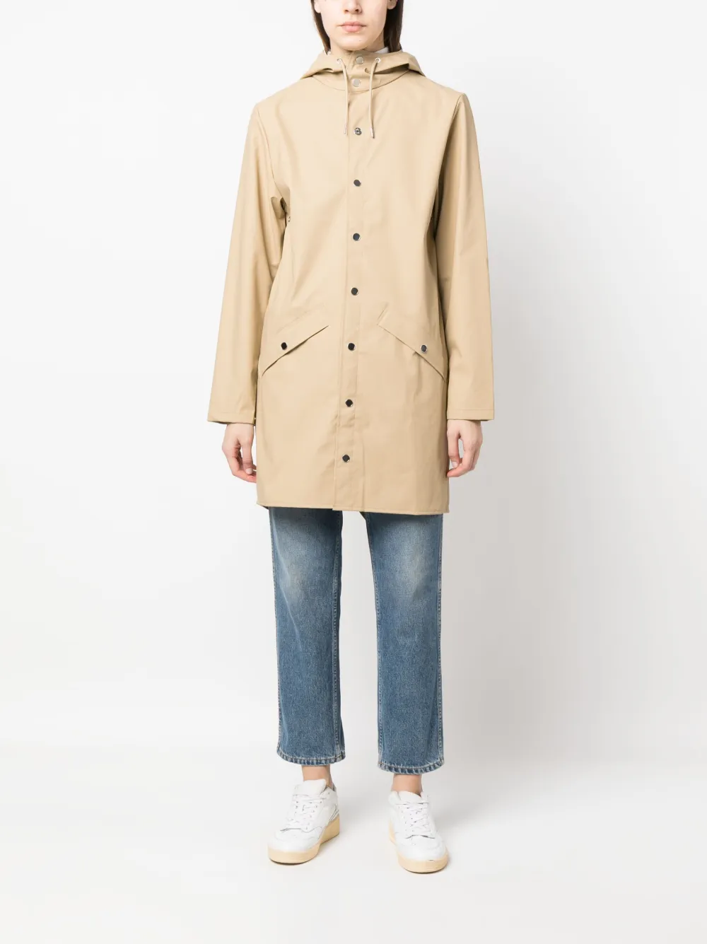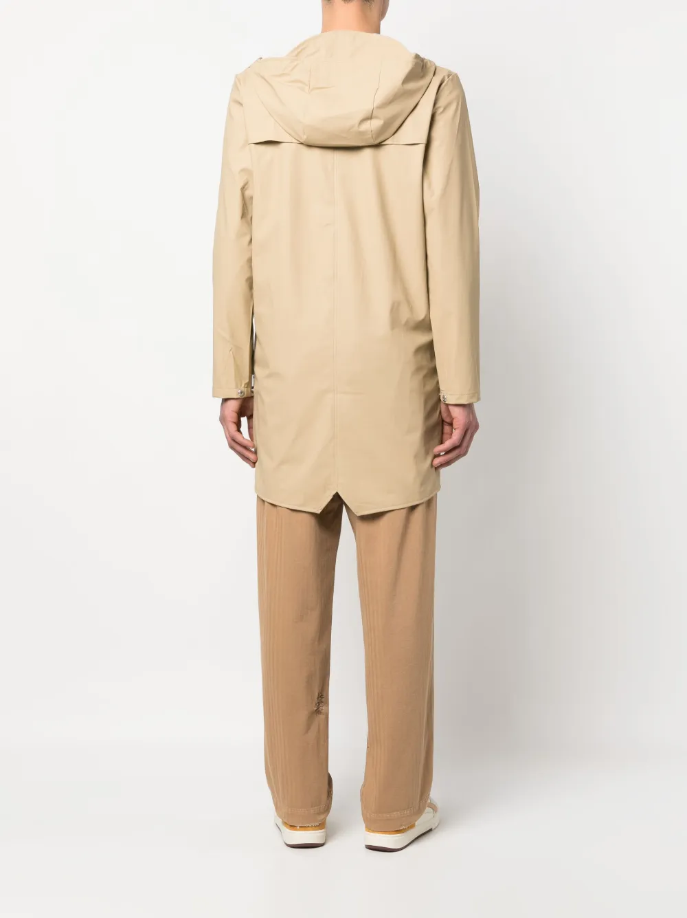 Подробнее о товаре: Бежевый, затягивающийся на шнурок капюшон, высокий воротник, застежка на кнопках спереди, длинные рукава, два боковых кармана с застежкой на кнопки и прямой подол. Это унисекс-модель. Обратите внимание, что для нее используется мужская размерная сетка. Узнать больше о том, какие товары получают отметку «Ответственный выбор», можно здесь.