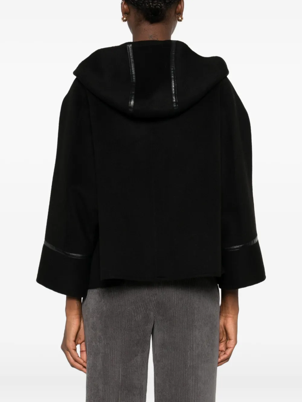 Черный капюшон с капюшоном из смеси шерсти и кашемира, застежка на пуговицы