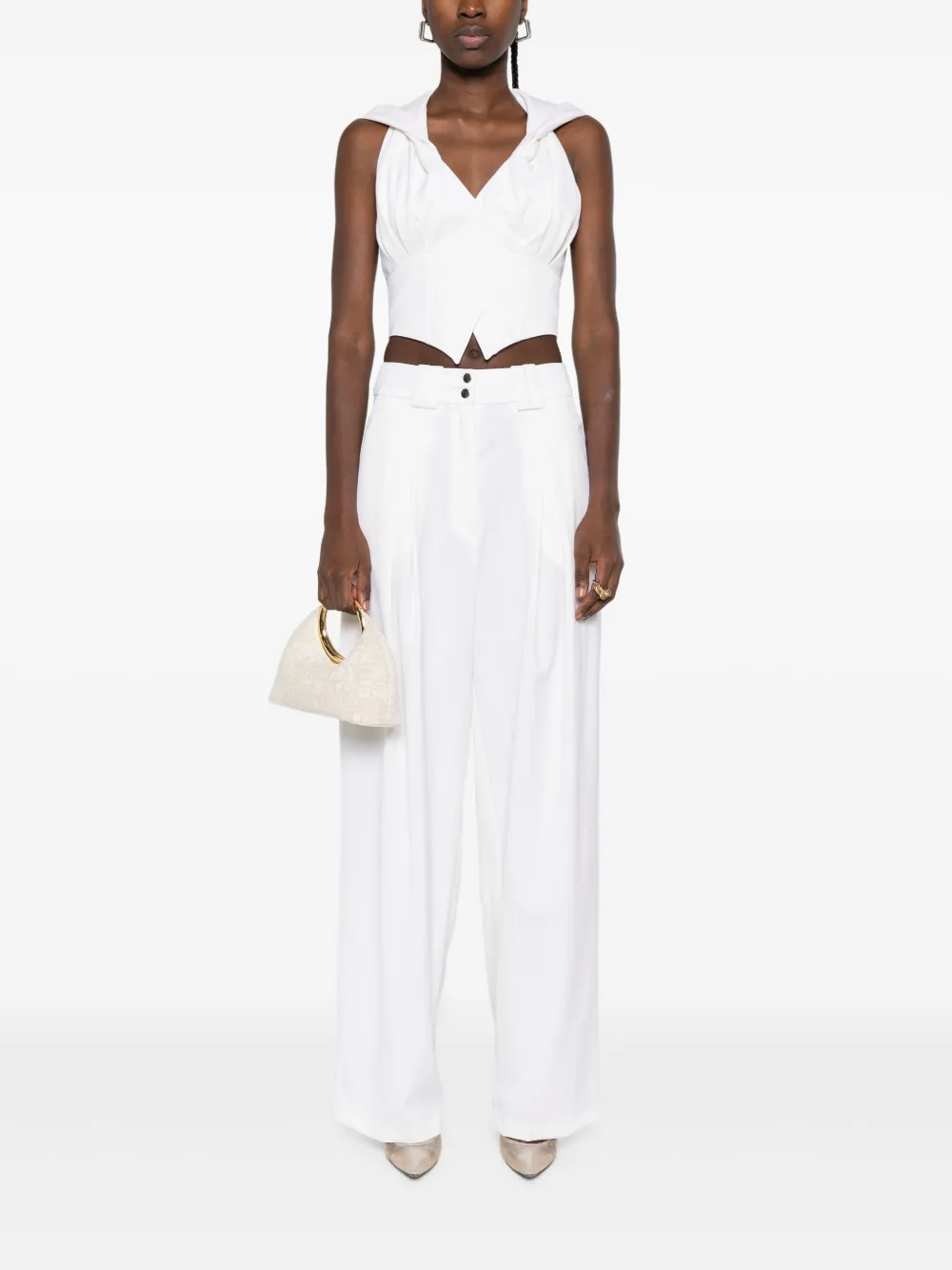 Белый корсетный лиф без рукавов с V-образным вырезом и заостренным подолом