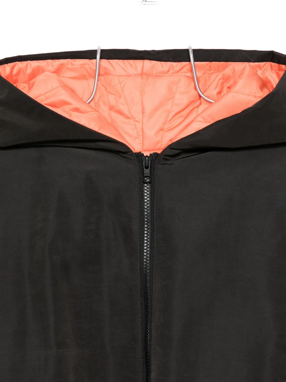 Черный капюшон, застежка-молния спереди, два прорезных кармана, эластичный подол.