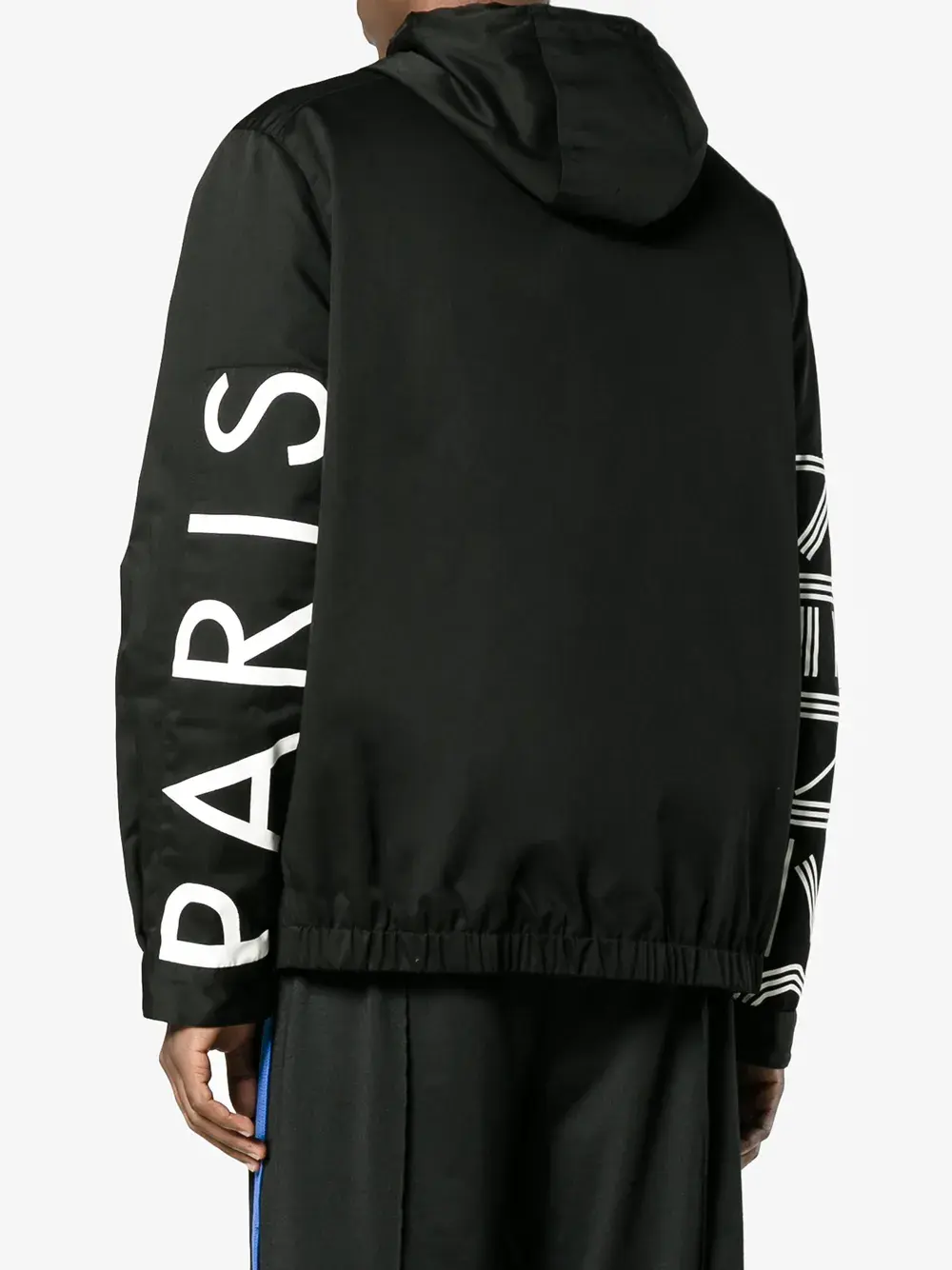 Черная куртка из хлопкового микса с капюшоном с принтом логотипа от Kenzo(Кензо).