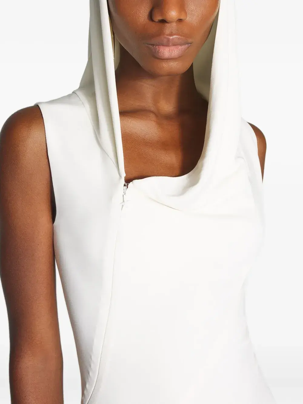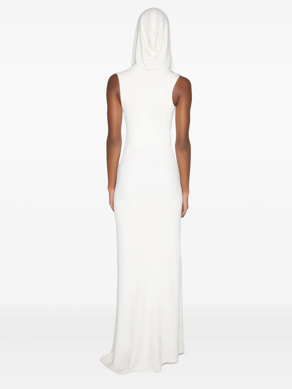 Белая макси-длина без рукавов с капюшоном