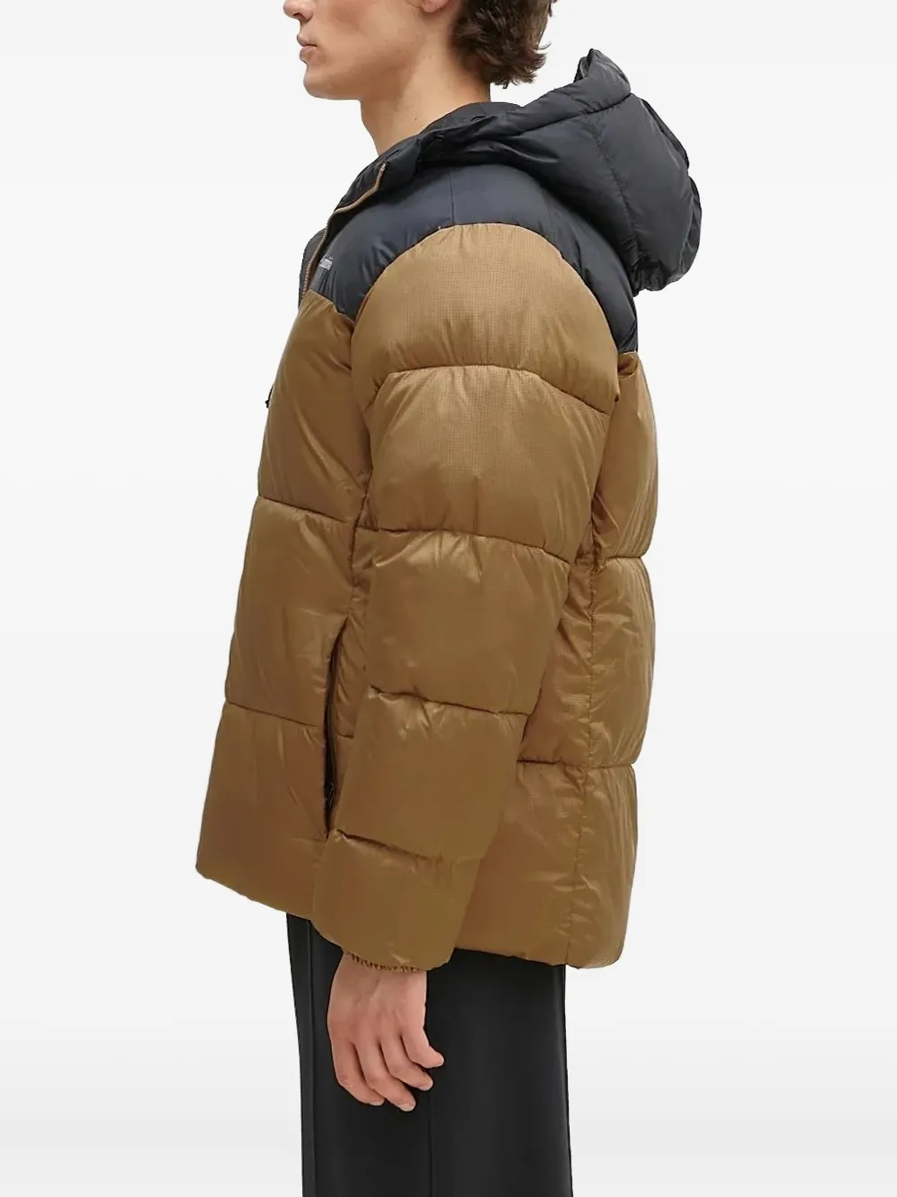Коричневый стеганый дизайн, капюшон, застежка-молния, двухцветные панели