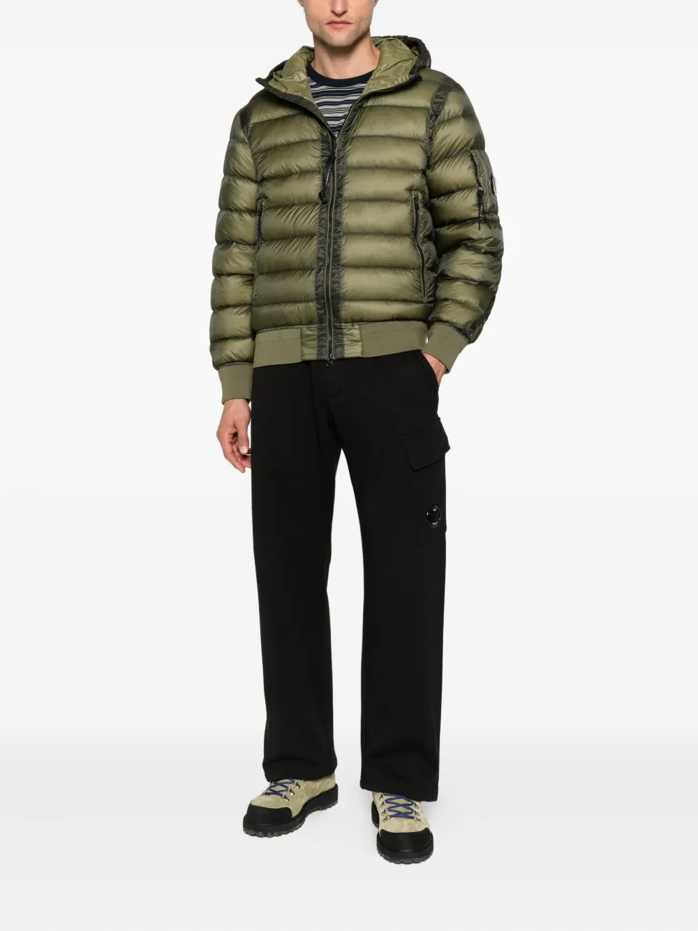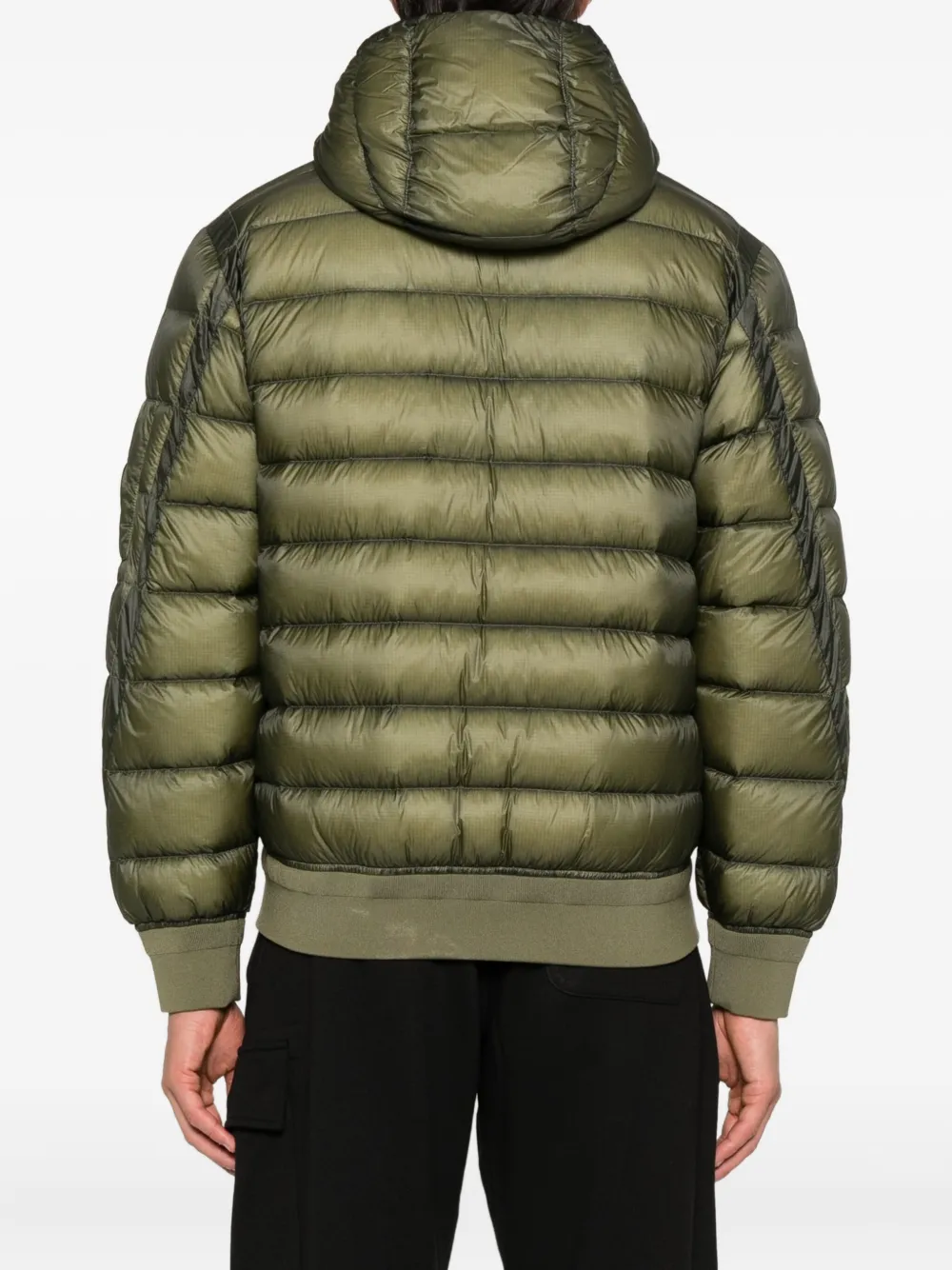 Оливково-зеленый стеганый дизайн, капюшон, застежка-молния, прорезные карманы, ребристые манжеты, эластичный подол. Компания CP Company рекомендует снимать все съемные аксессуары перед стиркой.