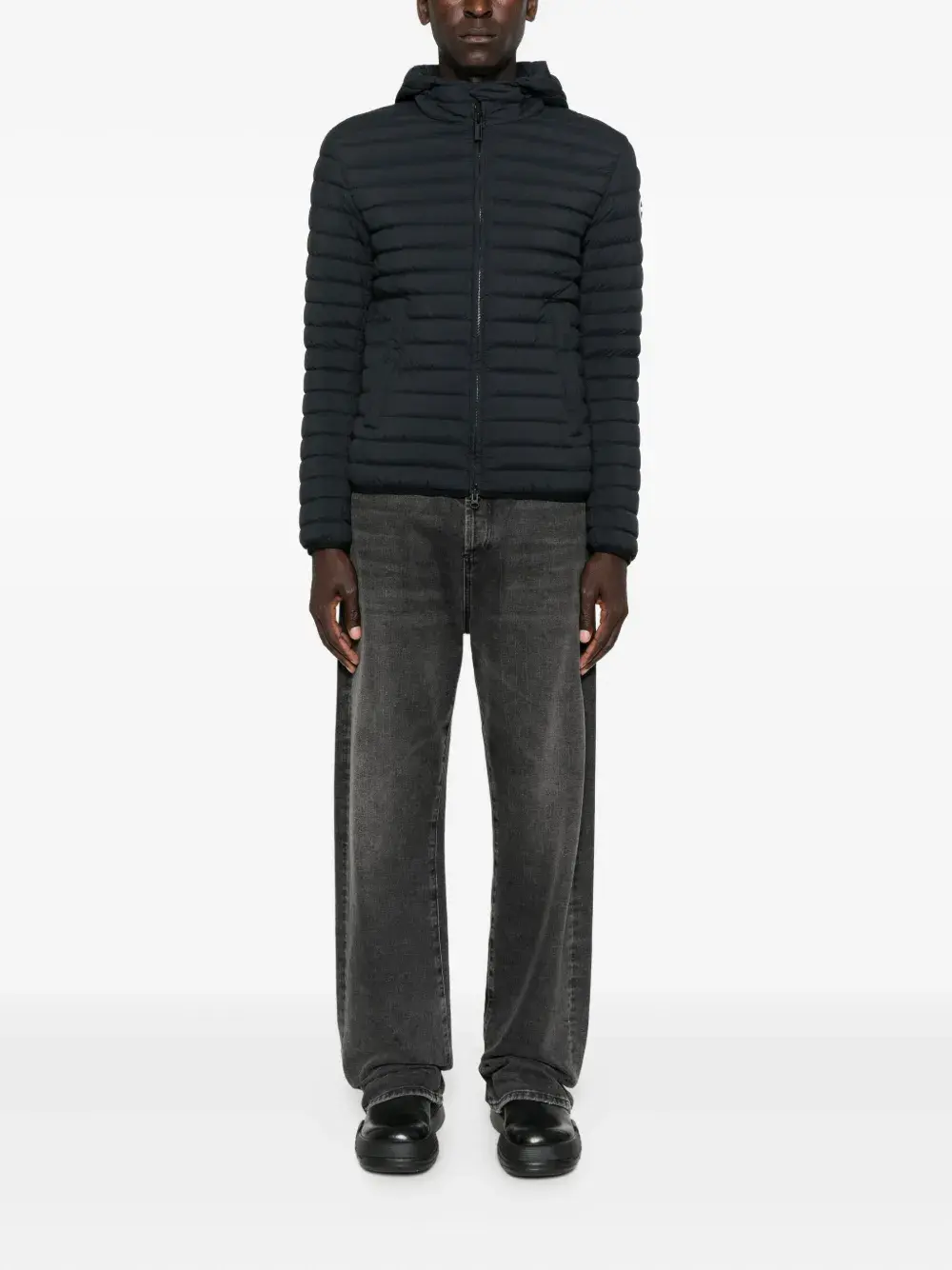 Черный стеганый дизайн, классический капюшон, застежка-молния спереди, длинные рукава, прорезные карманы