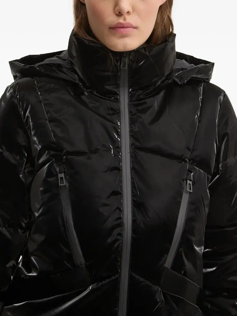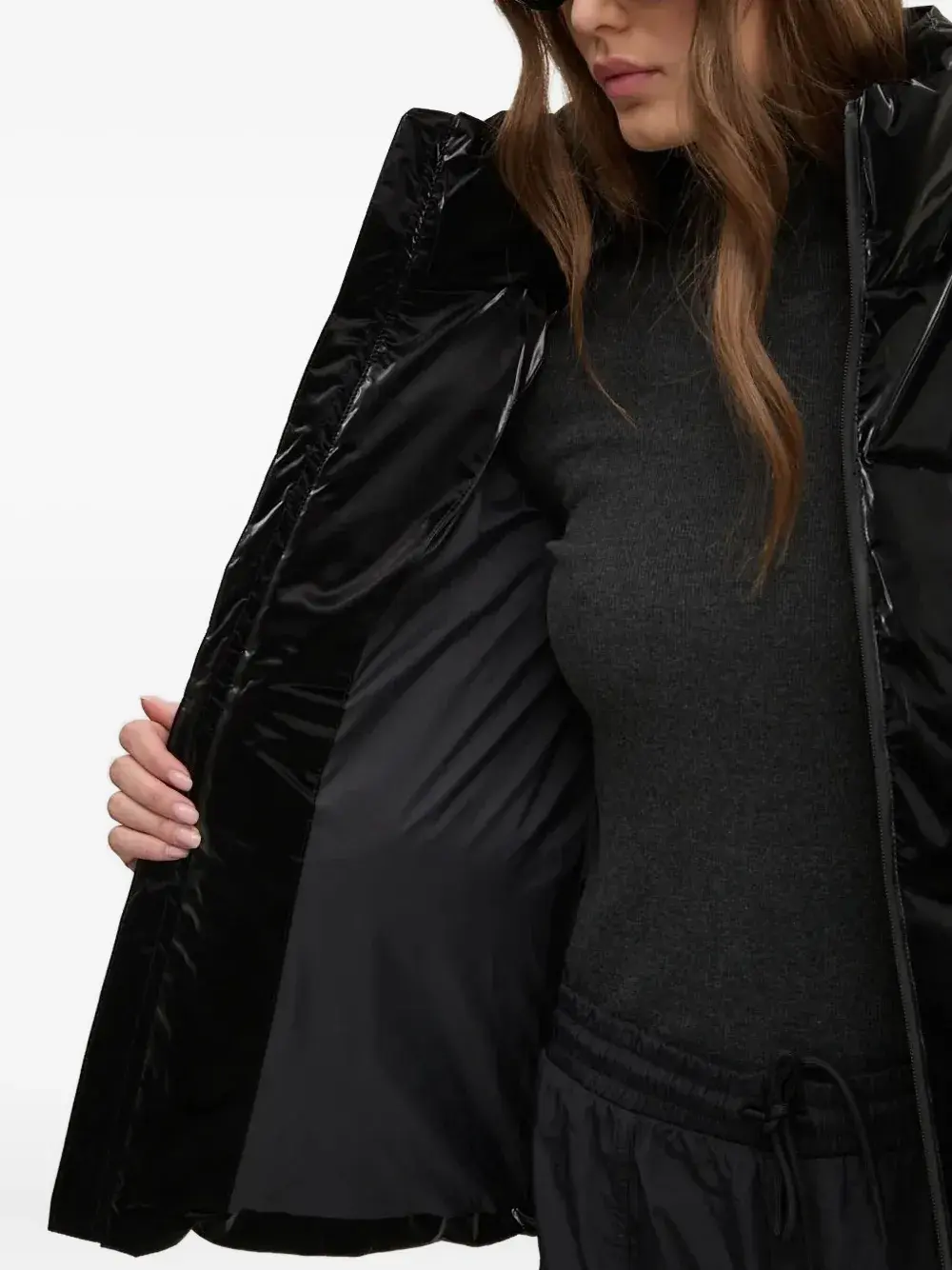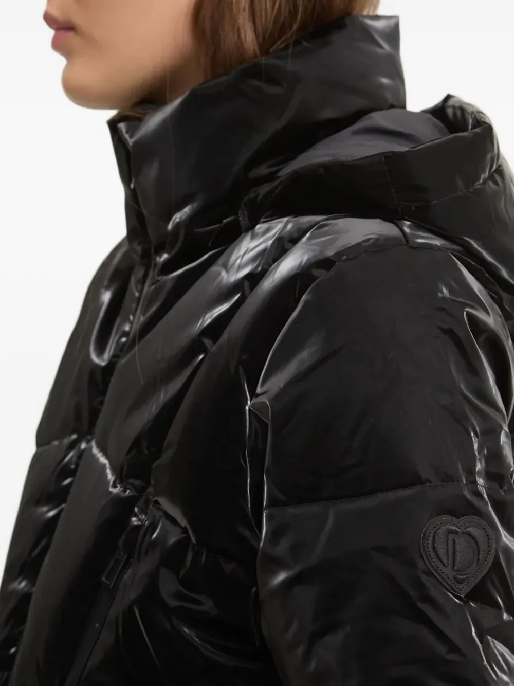 Черная стеганая модель с высоким воротом, застежкой-молнией и логотипом