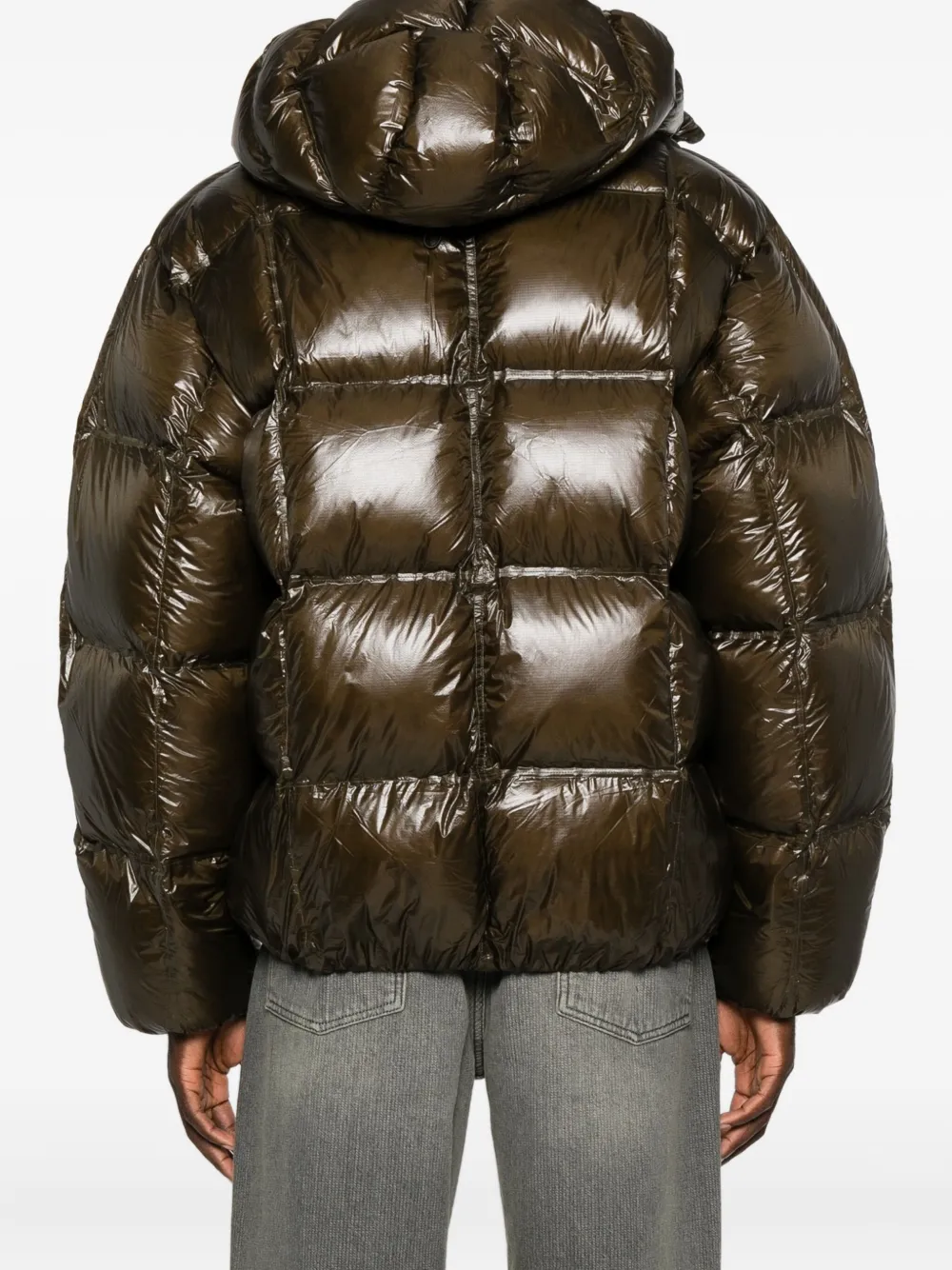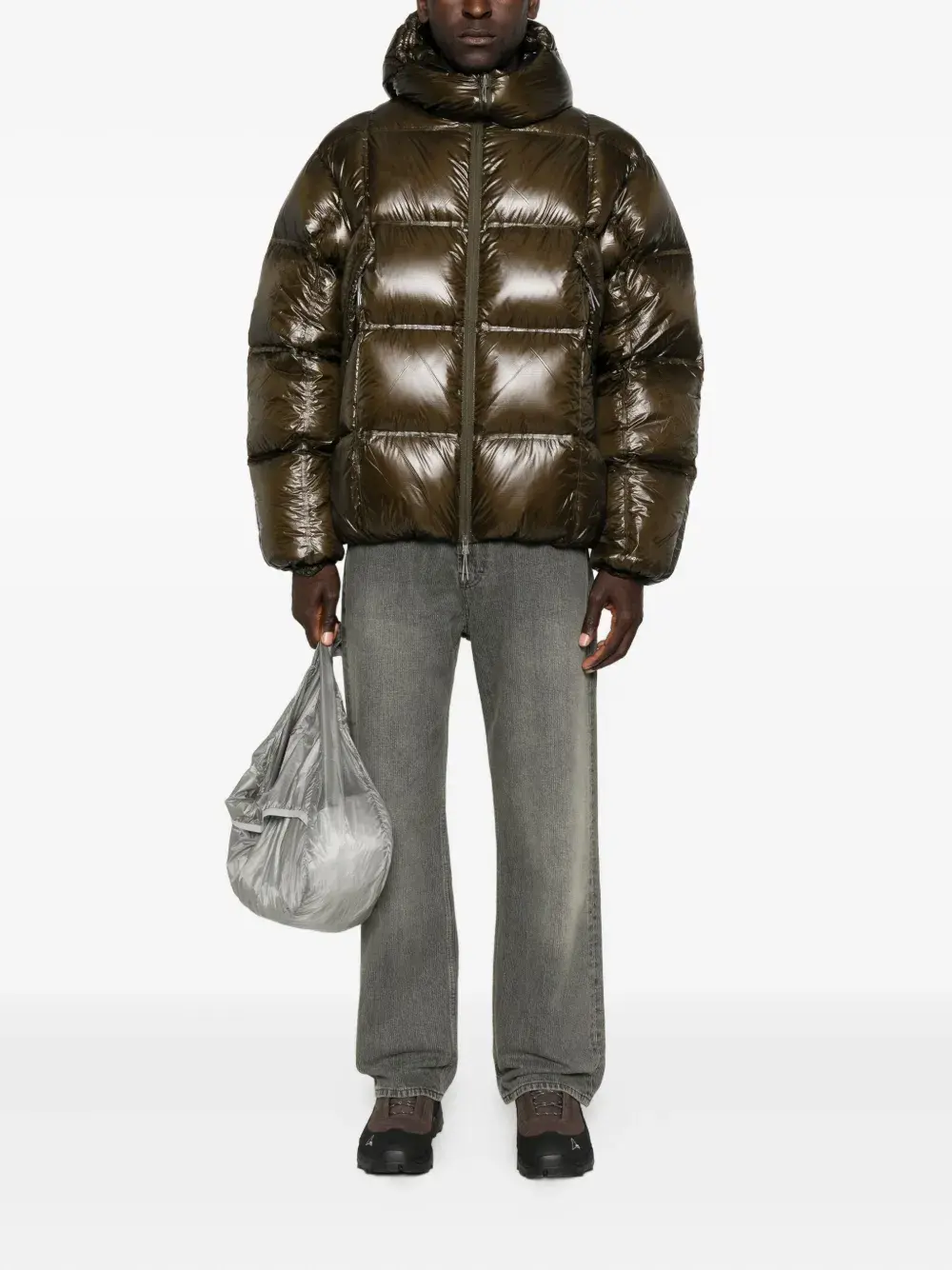 Темно-зеленый стеганый дизайн, высокий ворот, капюшон, застежка-молния, длинные рукава