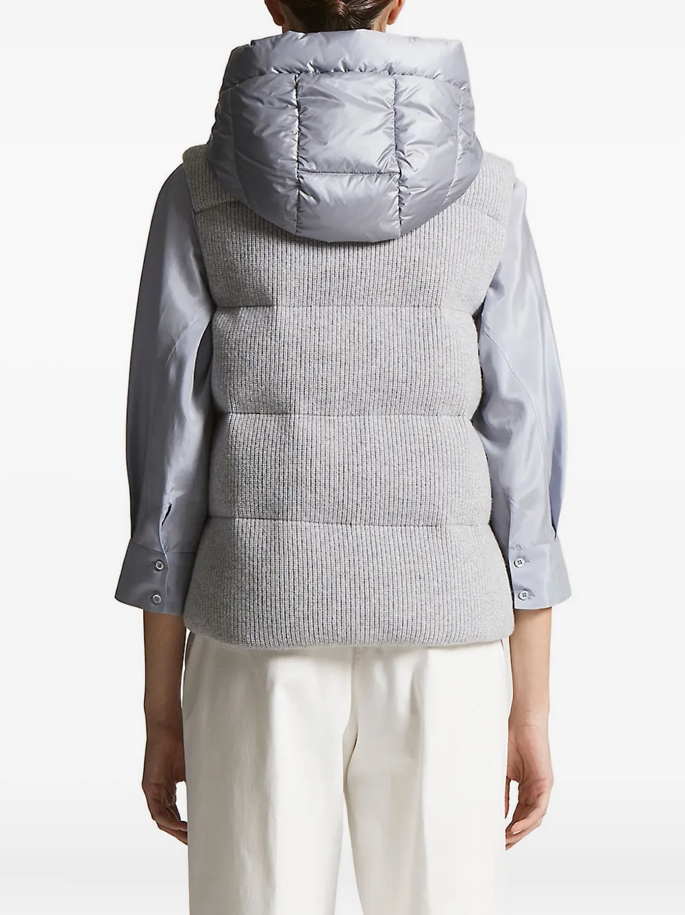 Серый стеганый дизайн, капюшон, застежка-молния, трикотажное тело