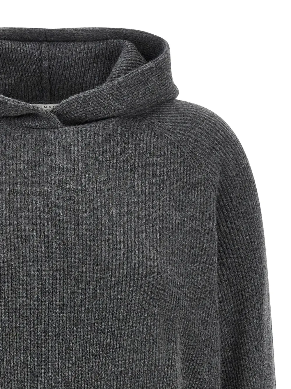 Ребристый свитер с капюшоном Brunello Cucinelli, серый