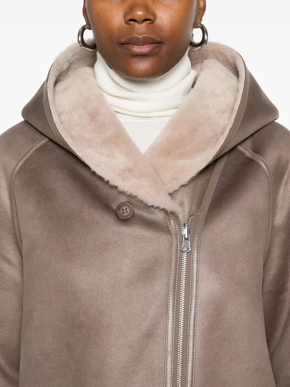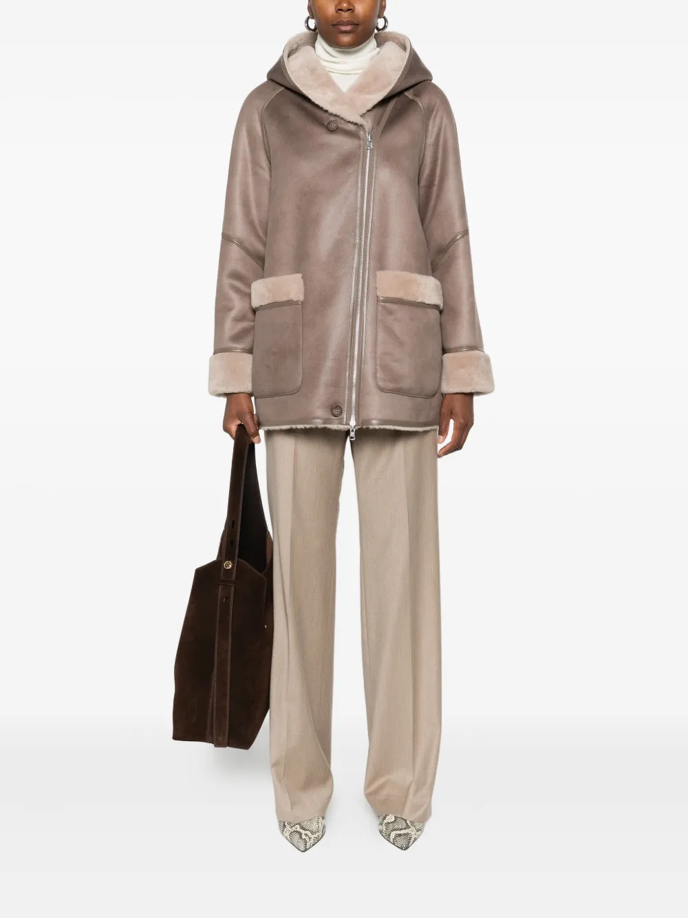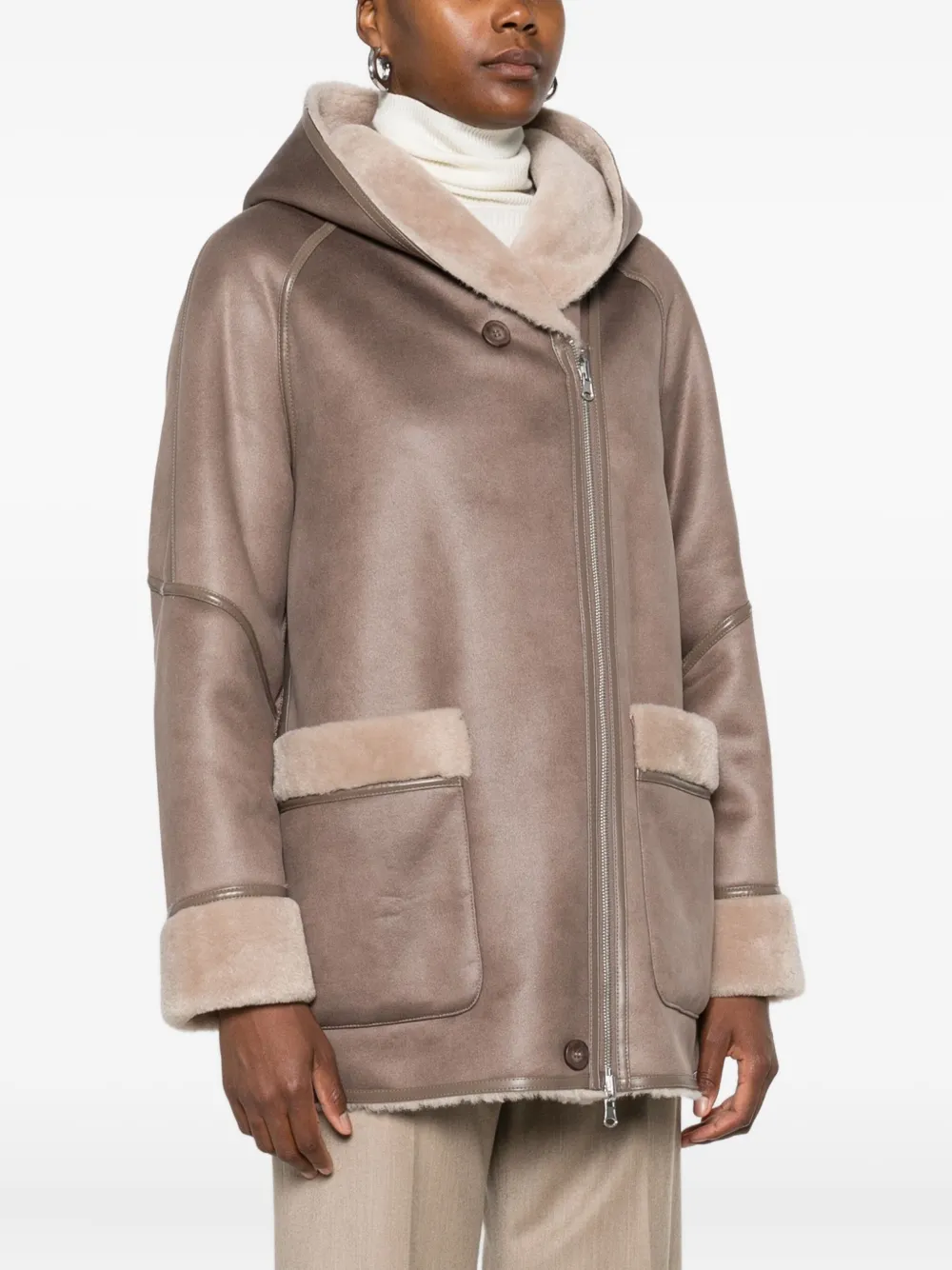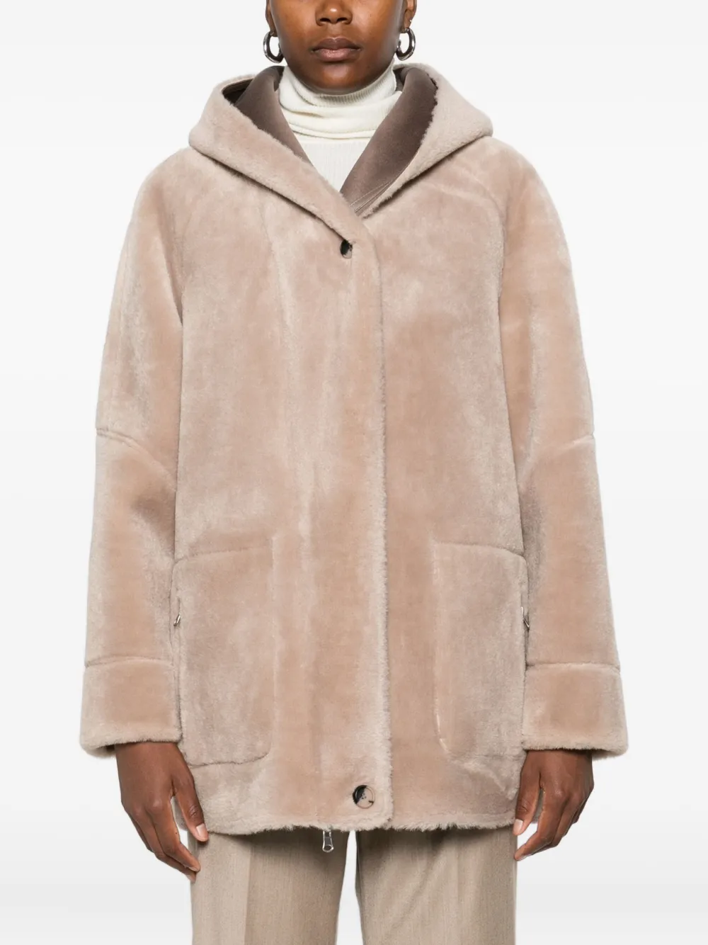 Пальто с капюшоном и отделкой из овчины Urbancode, коричневый 23 592₽