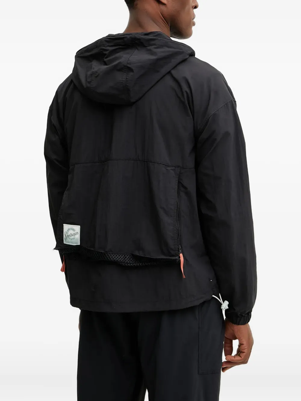 Черная застежка-молния, множество карманов, затягивающийся шнурок на капюшоне, нашивка с логотипом