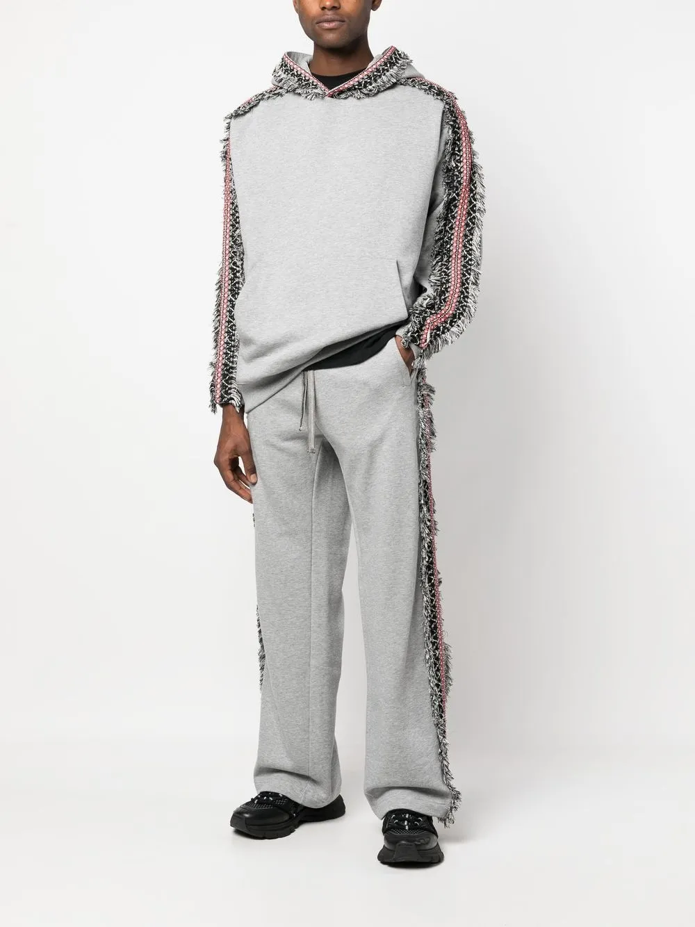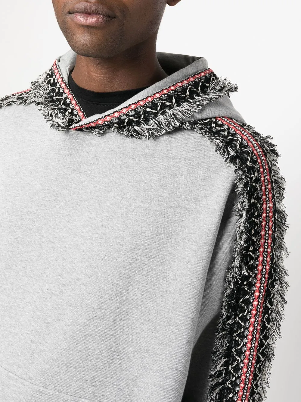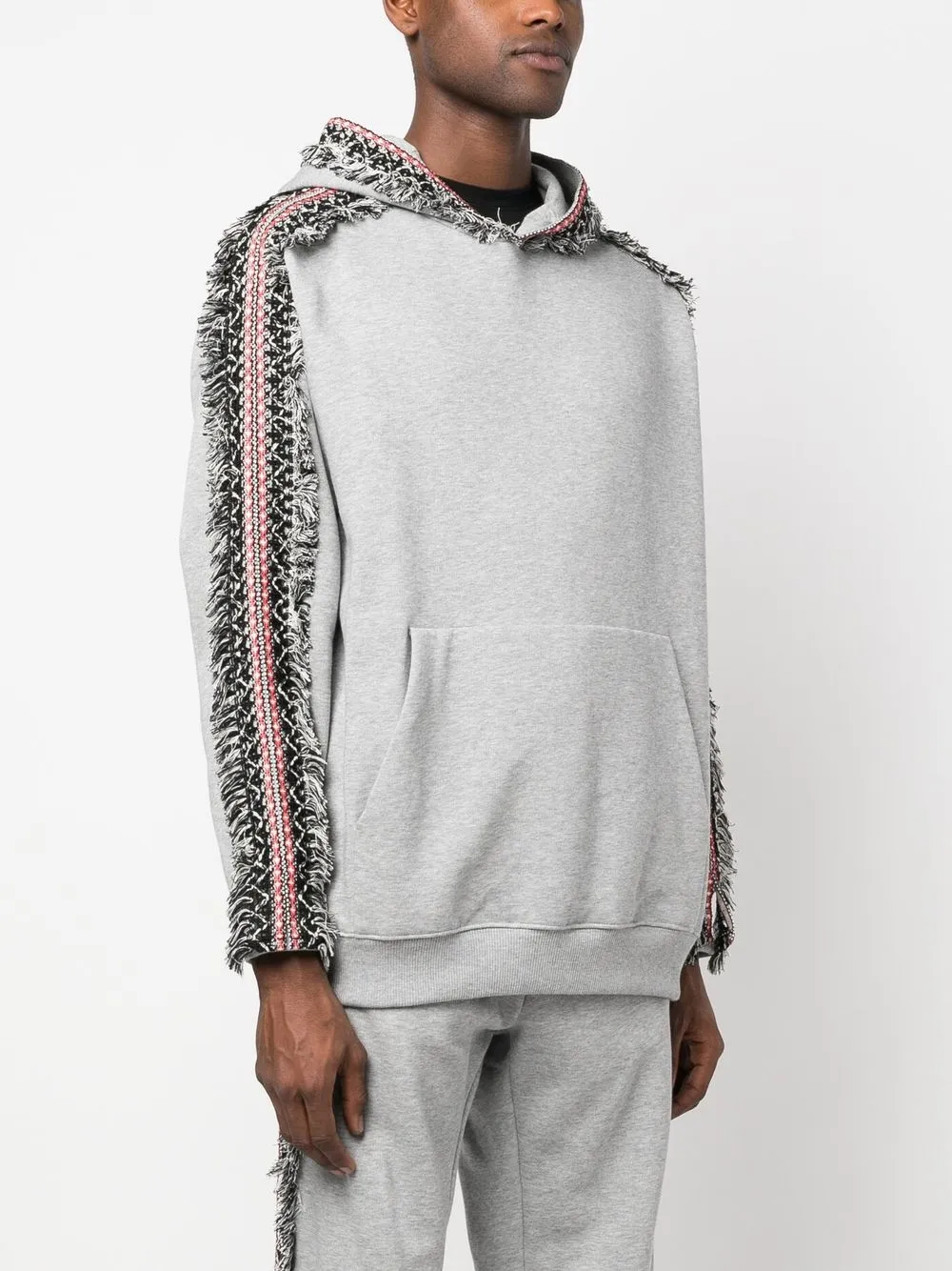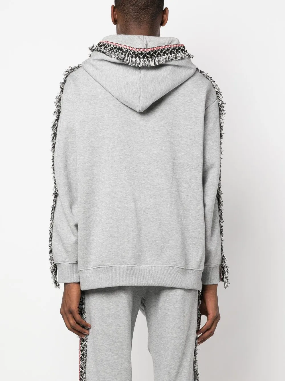 Серый, черный/красный, хлопок, вышивка, декоративные кисточки, классический капюшон, длинные рукава и карман-муфта.
