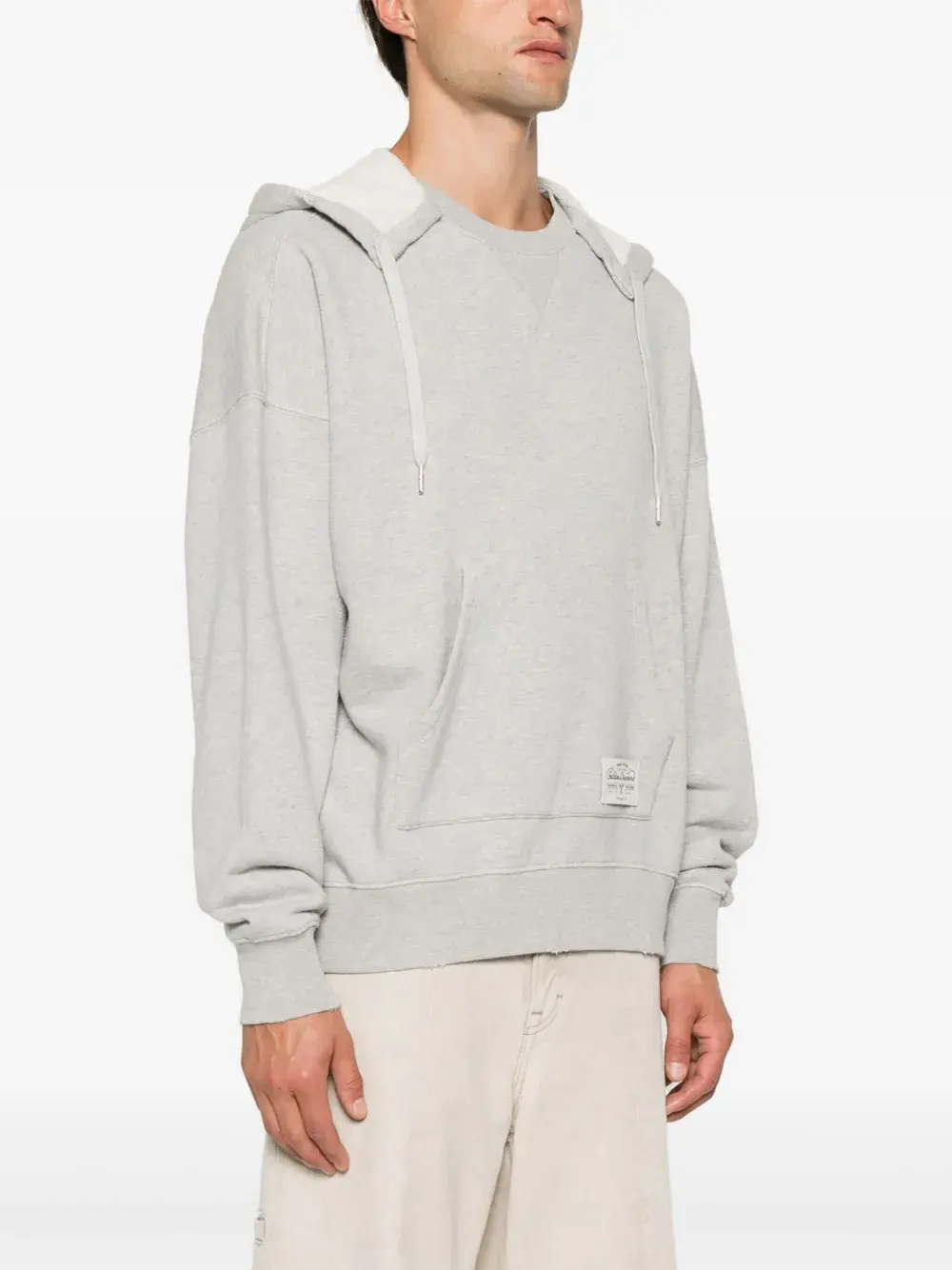 Подробнее о товаре: • светло-серый • хлопок • эффект меланж • эффект потертости • принт с надписью сзади • объемный капюшон на шнурке • круглый вырез • приспущенные плечи • длинные рукава • накладной карман спереди • нашивка с логотипом спереди • металлический логотип сзади • подкладка из футера • подол и манжеты в рубчик • Это унисекс-модель. Обратите внимание, что для нее используется мужская размерная сетка.