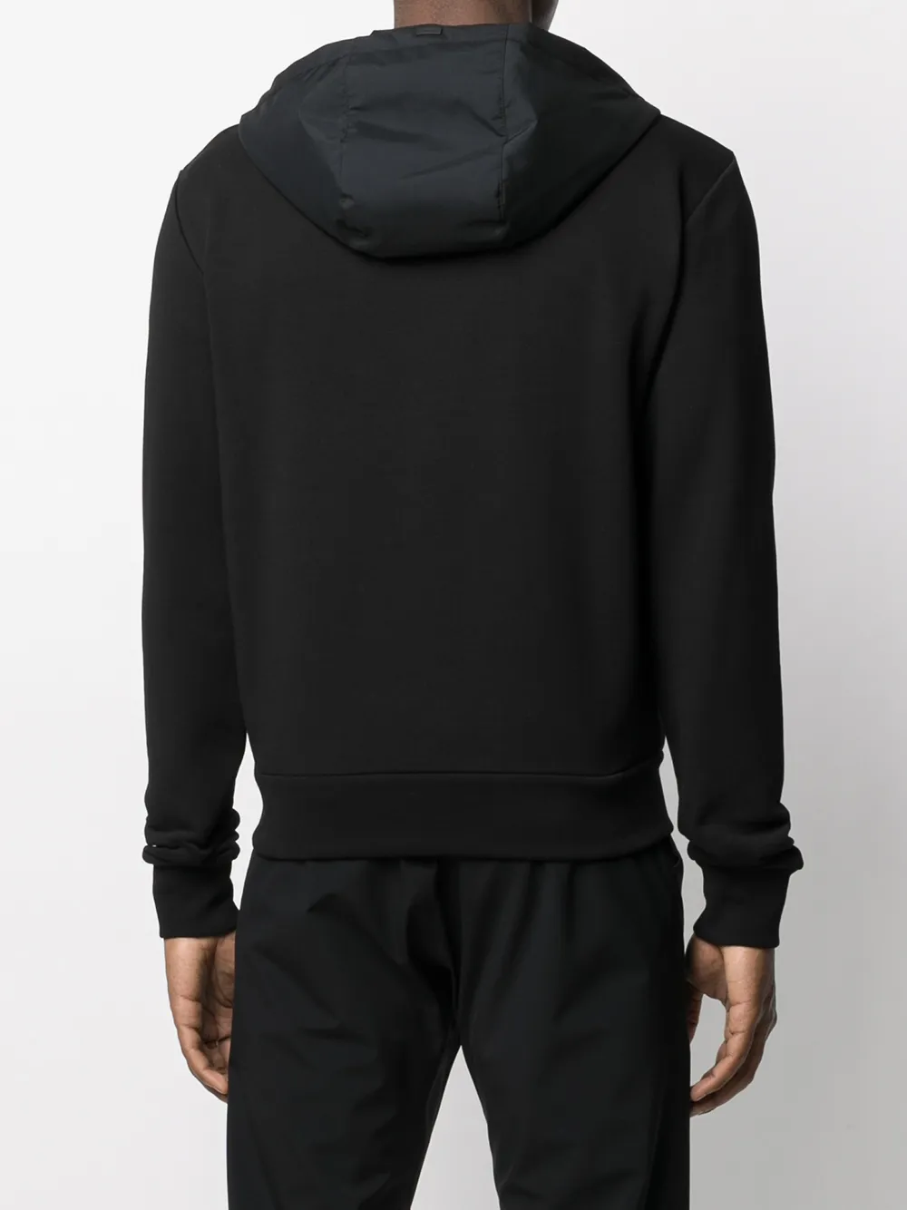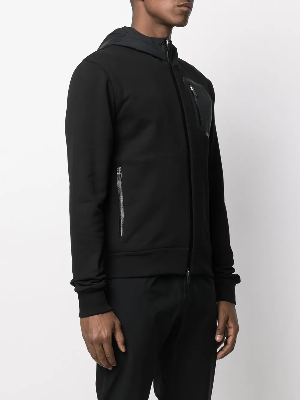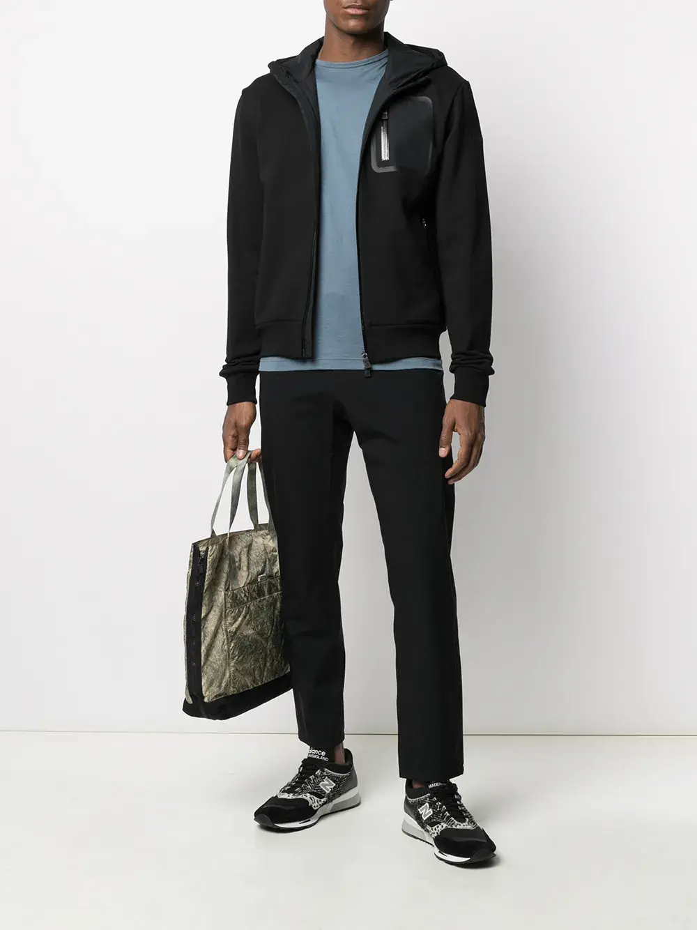 Классический капюшон, длинные рукава, карман на молнии спереди, застежка на молнии спереди и два кармана на молнии по бокам. Цвет: черный.