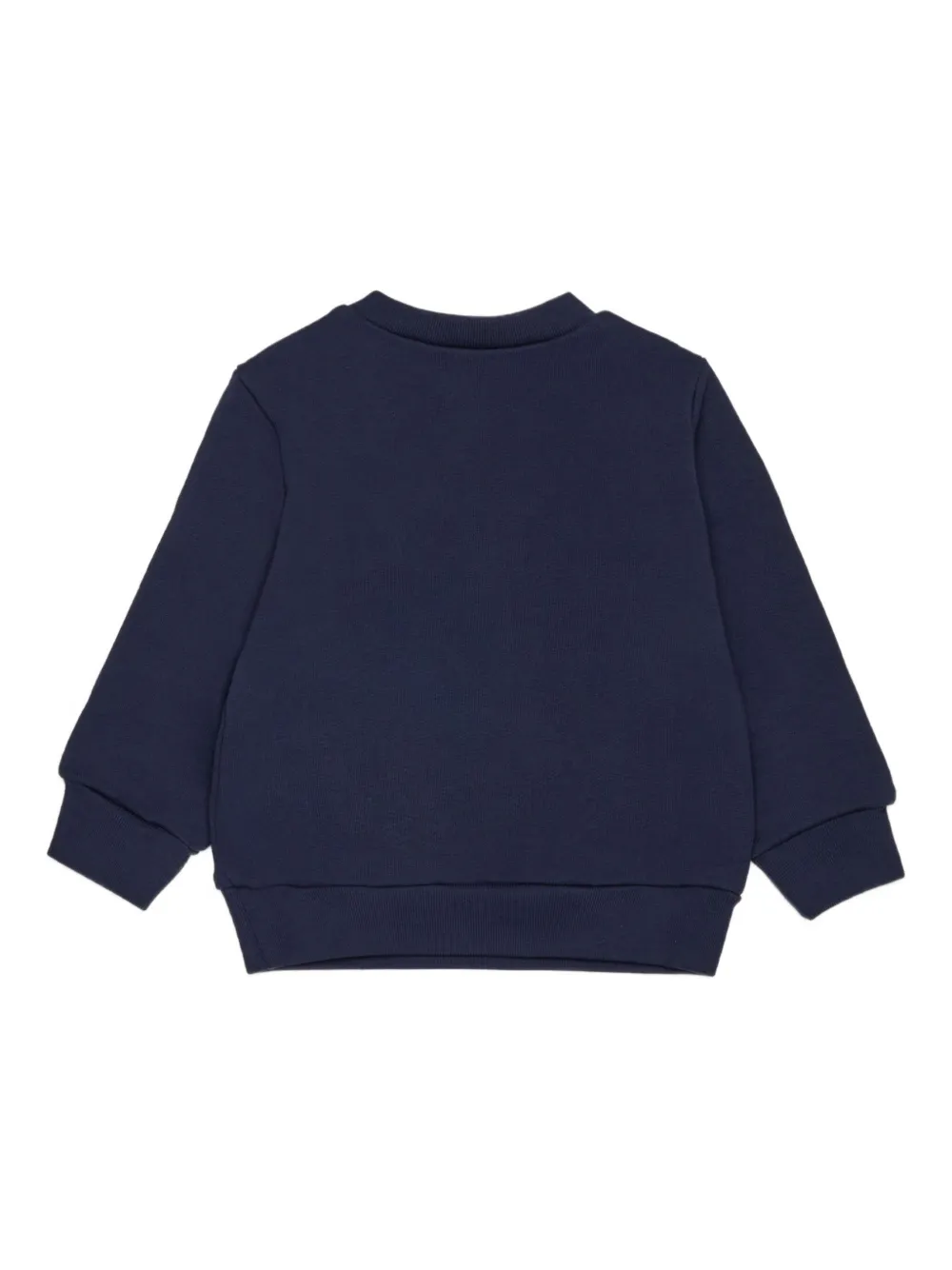 Темно-синий хлопковый джемпер с круглым вырезом, длинными рукавами, ребристыми манжетами и вышитым логотипом.