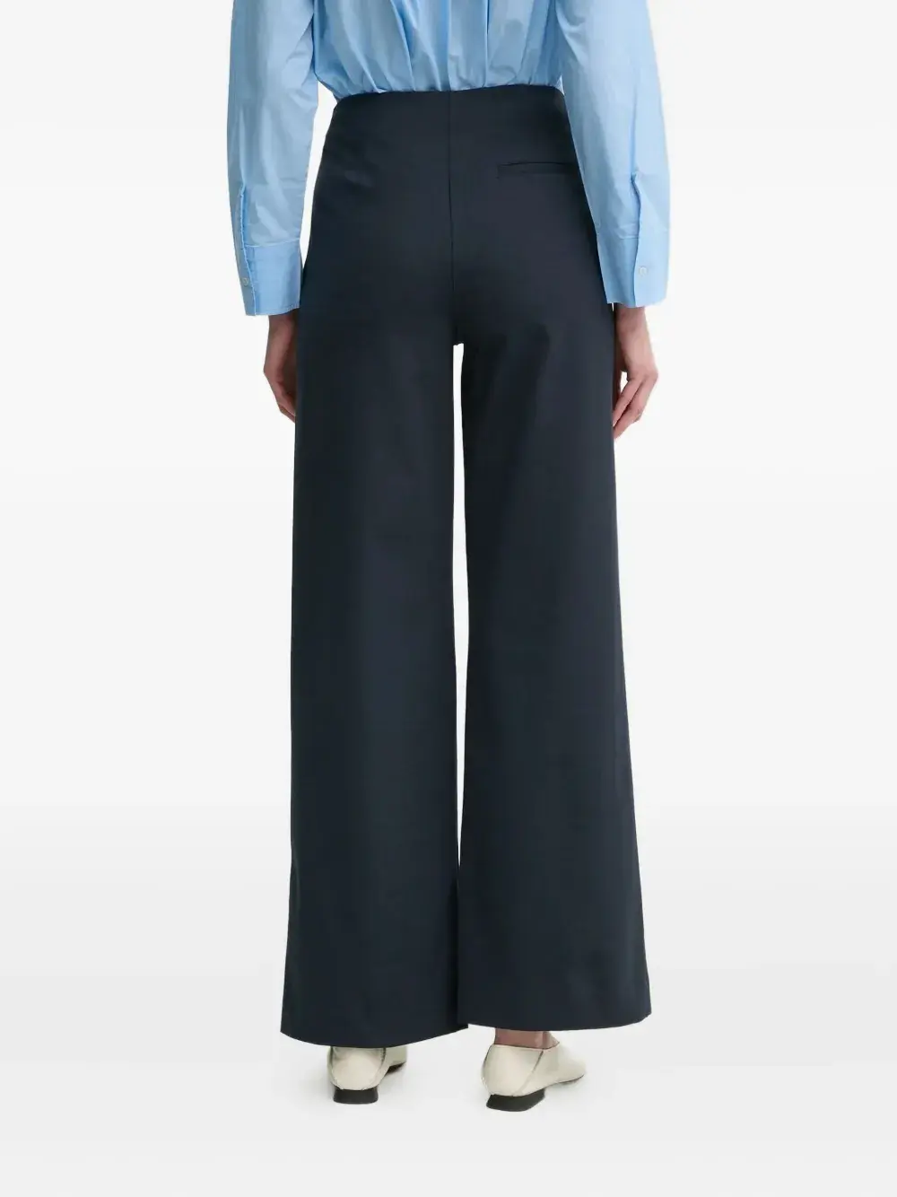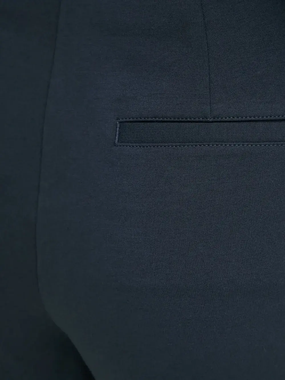 Темно-синий с высокой талией, прорезным карманом сзади, прямым нижним краем
