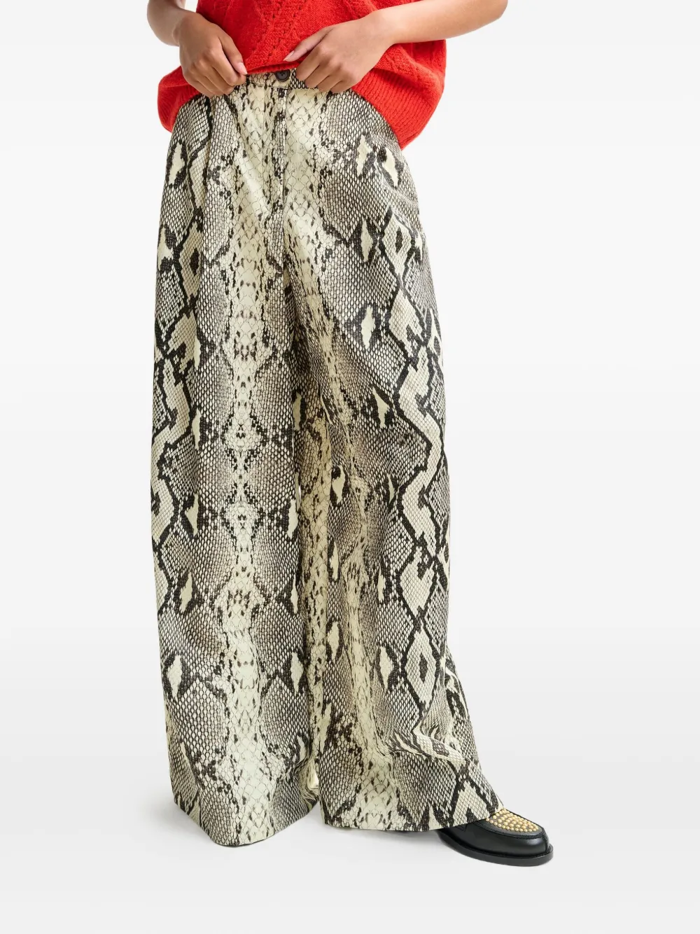Бежевый принт со змеиной кожей, складки на талии, прорезные карманы, косые карманы