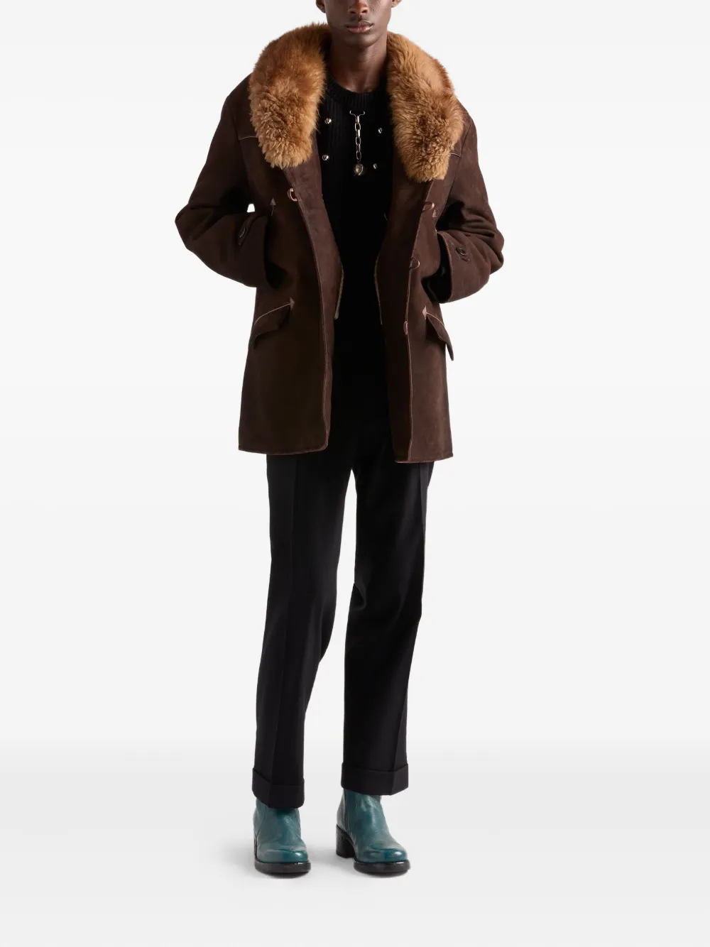 Куртка с меховым воротником Prada, коричневый