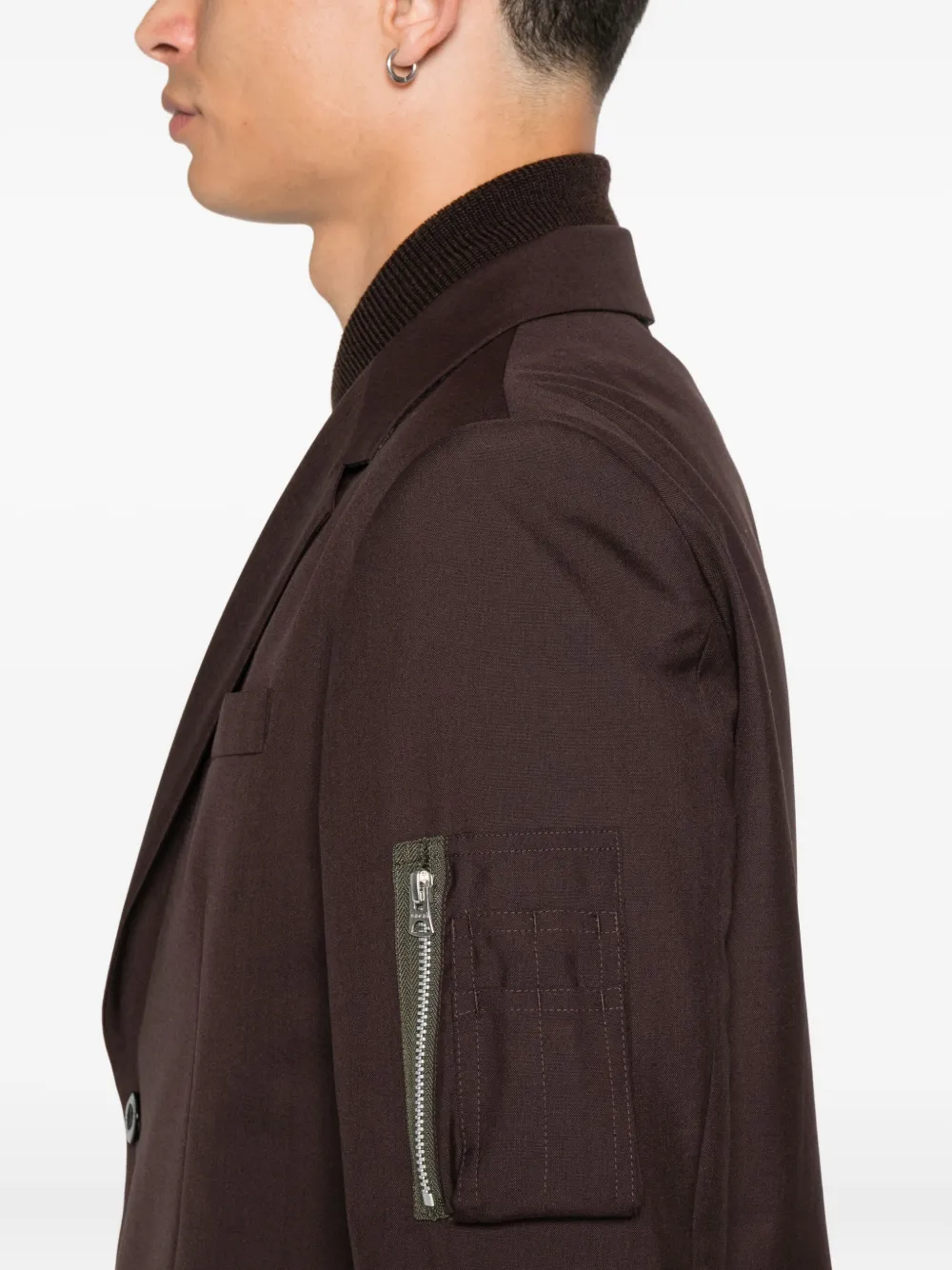 Пиджак на молнии SACAI, коричневый