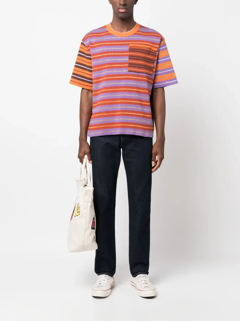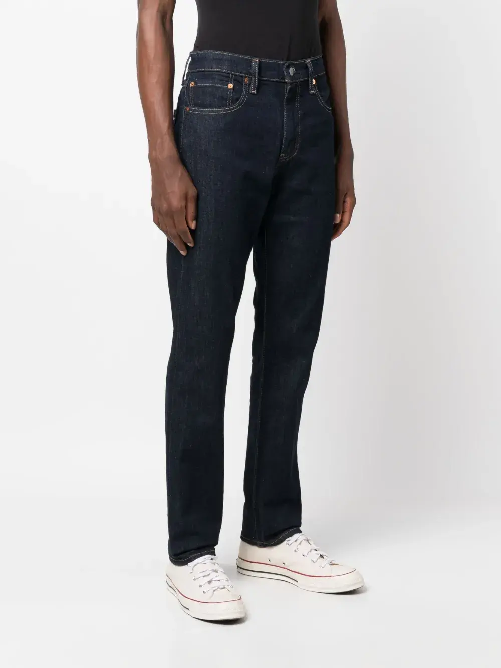 Индиго, смесовый хлопок, деним, бирка с логотипом, нашивка с логотипом сзади, петли для ремня, застежка на молнии и пуговице спереди и пять карманов.