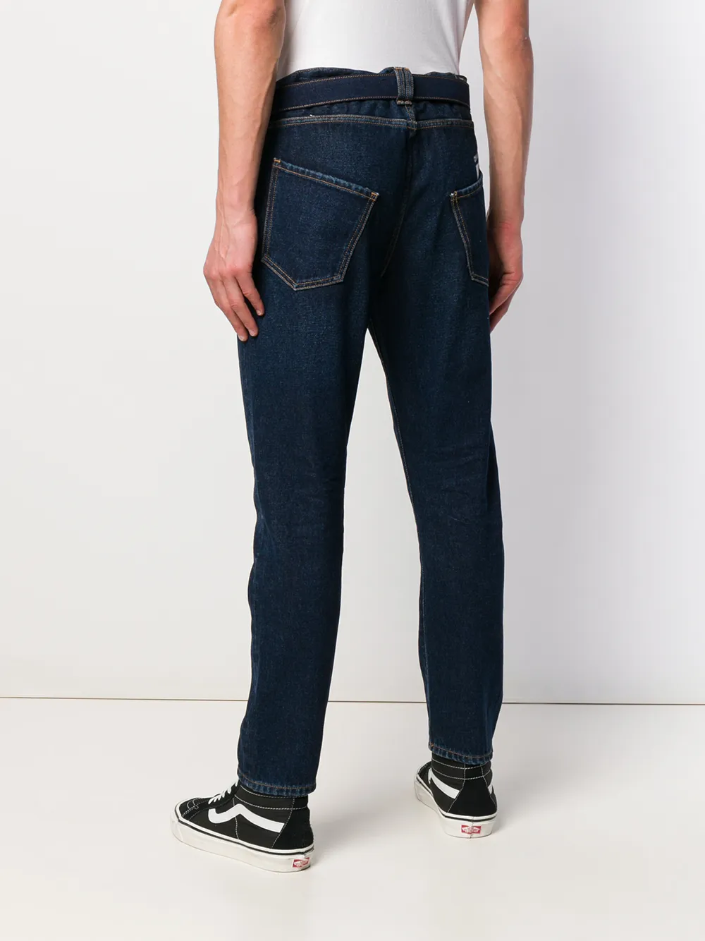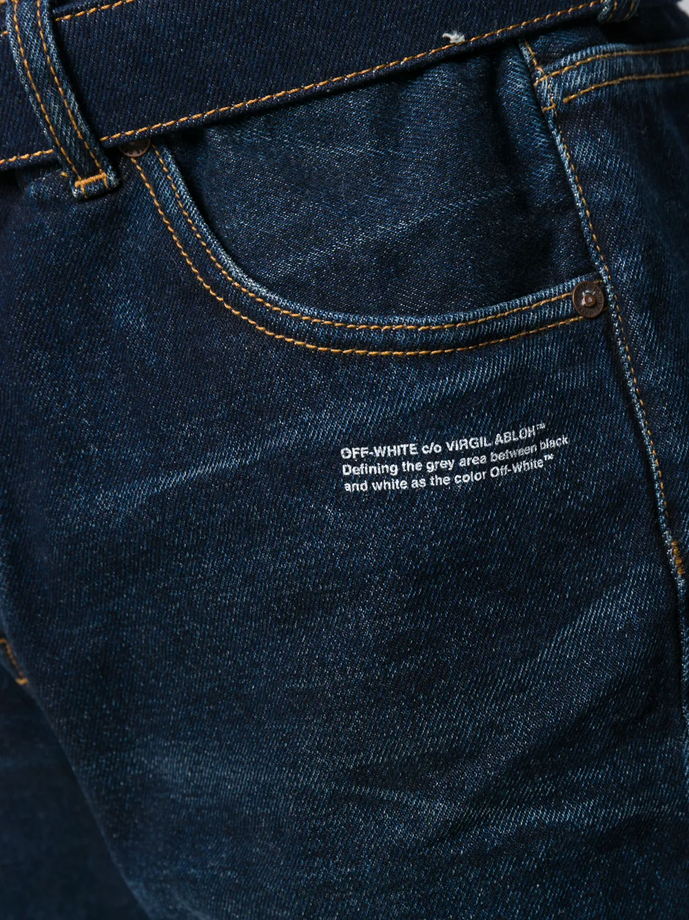 Джинсы с поясом от Off-White. Ширинка на молнии с пуговицей, классическая пятикарманная модель, стандартная длина и сужающиеся к низу брючины. Цвет: синий.