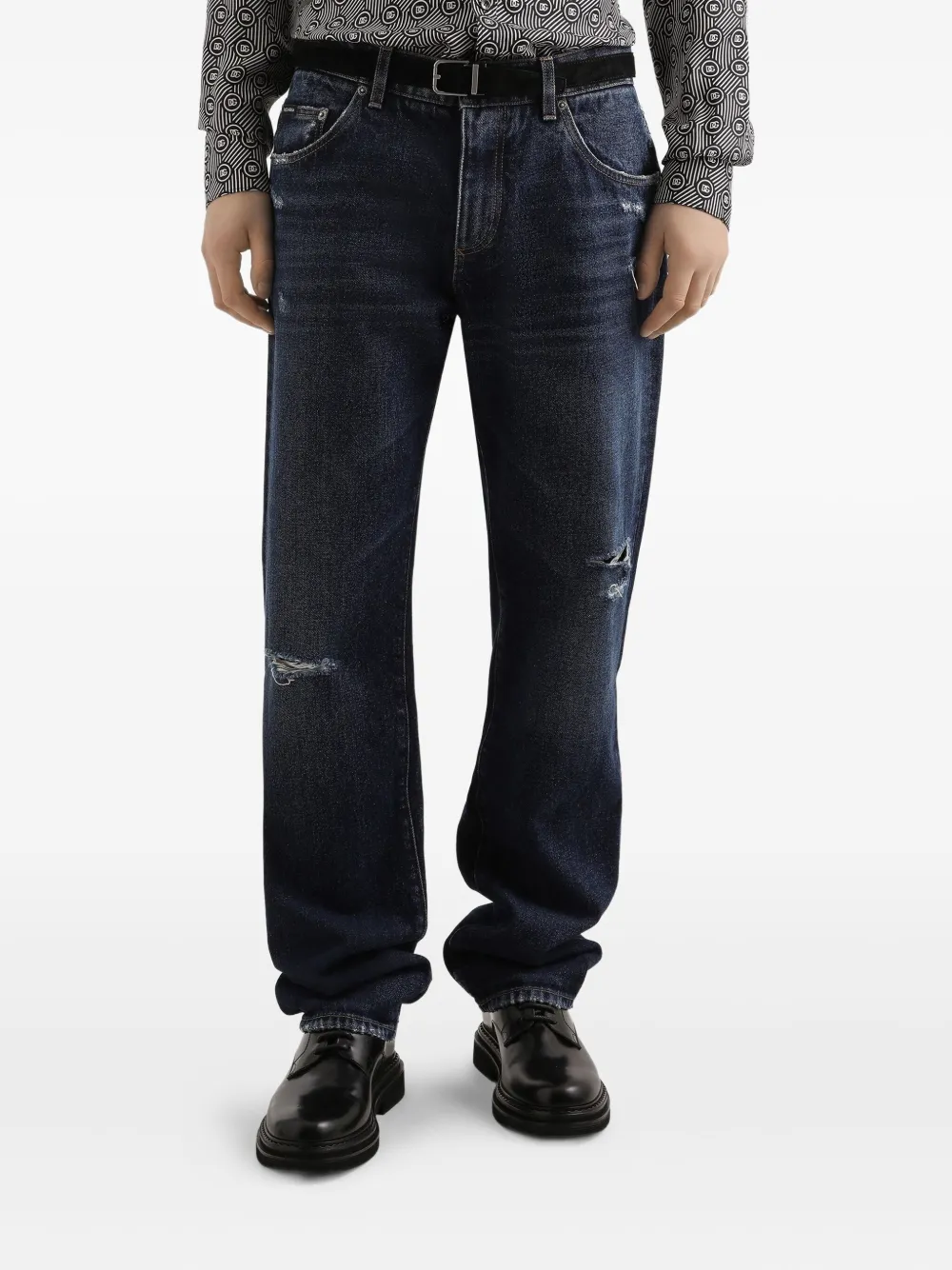 Джинсы с прорезями и эффектом потертости DOLCE & GABBANA, синий