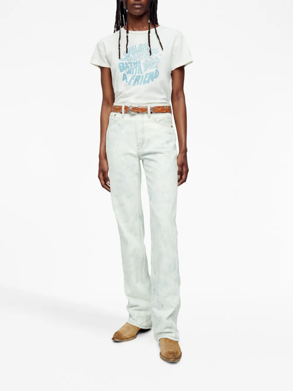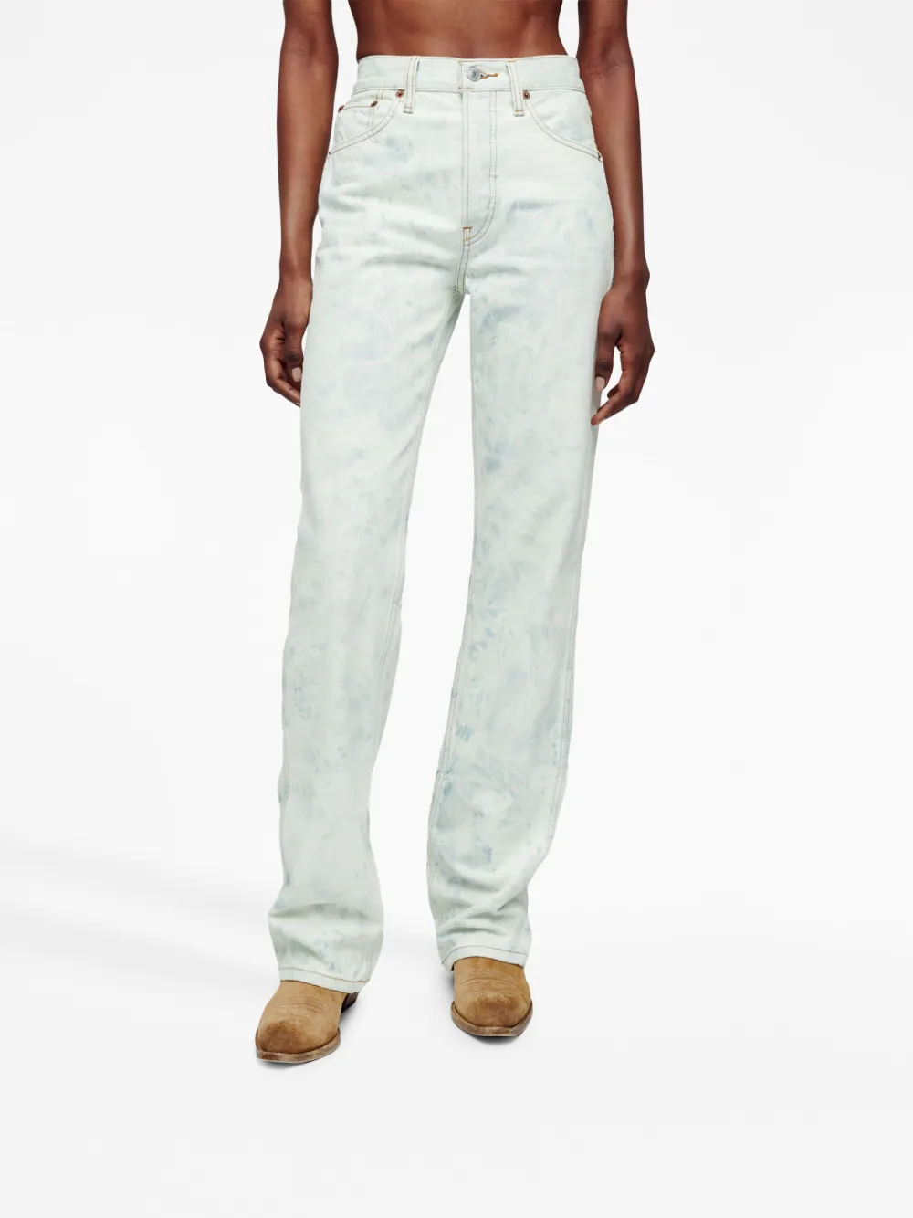 Подробнее о товаре: Расцветка Cloud White, хлопок, деним, эффект обесцвечивания, модель с прорезями, нашивка с логотипом сзади, петли для ремня, потайная застежка на молнии и пуговицах, пять карманов, завышенная талия и широкий крой. Этот товар как минимум на 50% состоит из переработанных или повторно использованных материалов. Узнать больше о том, какие товары получают отметку «Ответственный выбор», можно из материала «Как мы оцениваем экологичность и этичность».