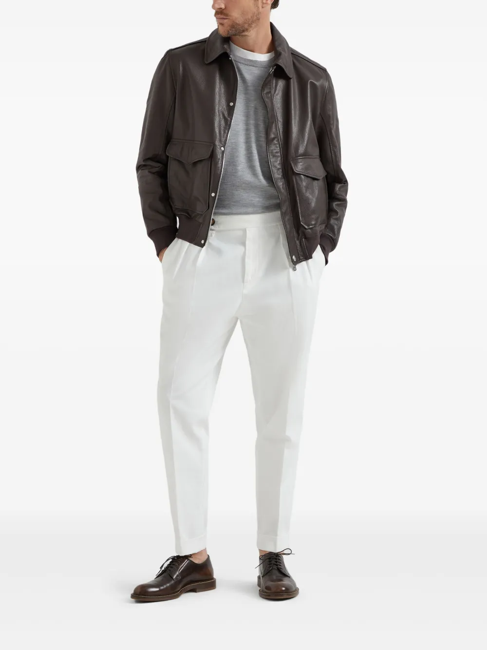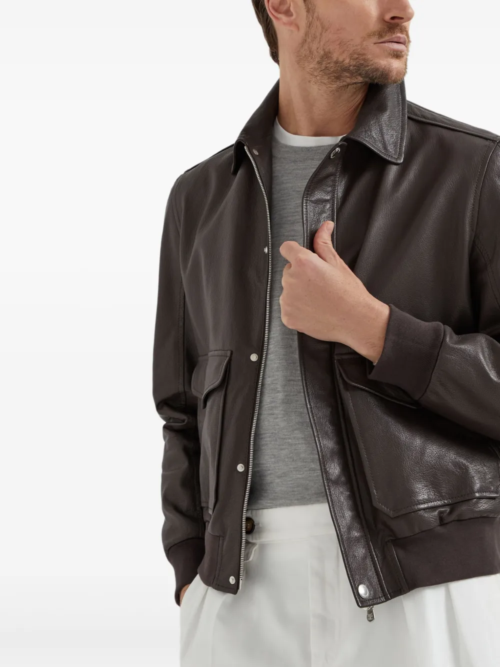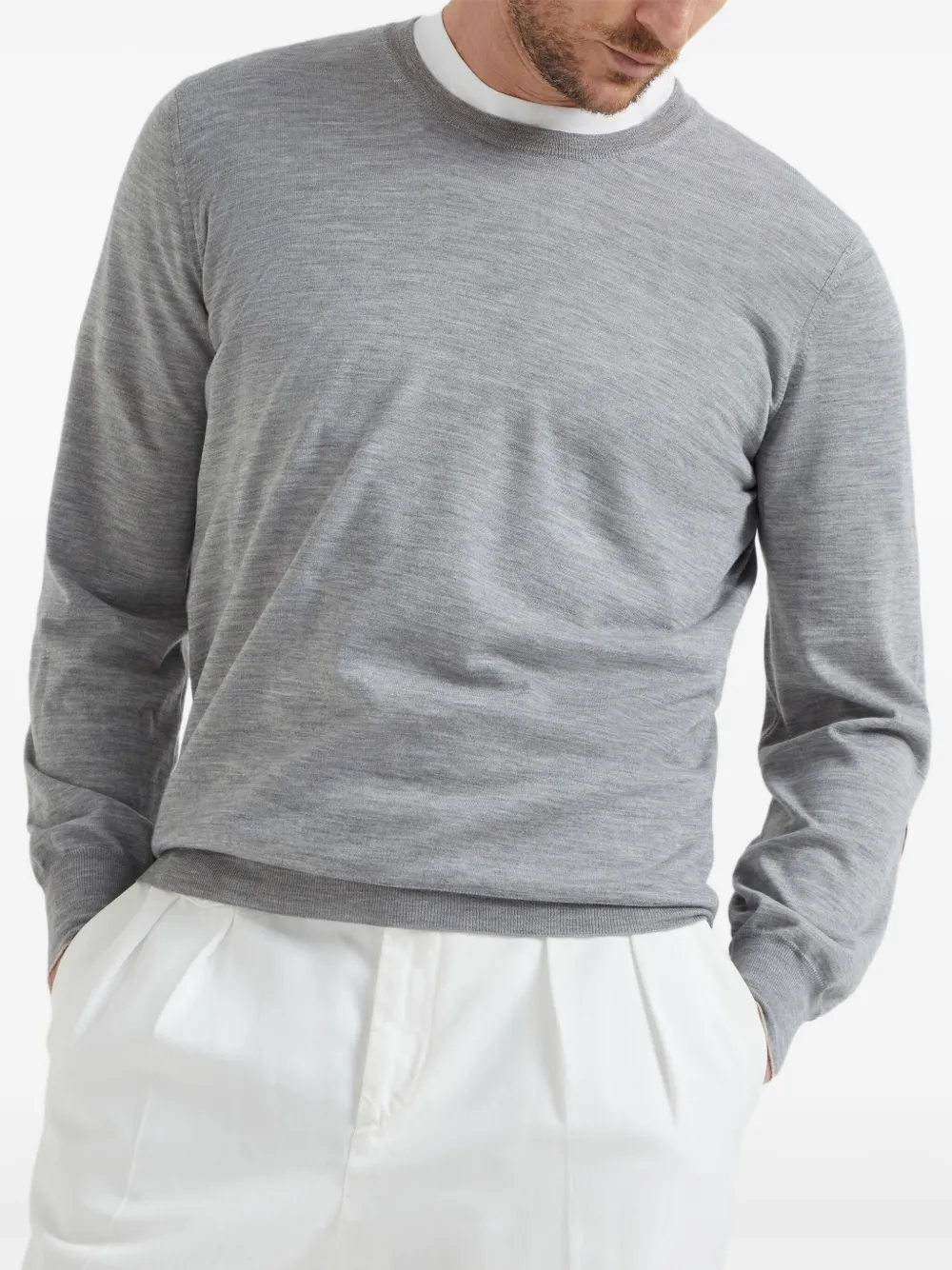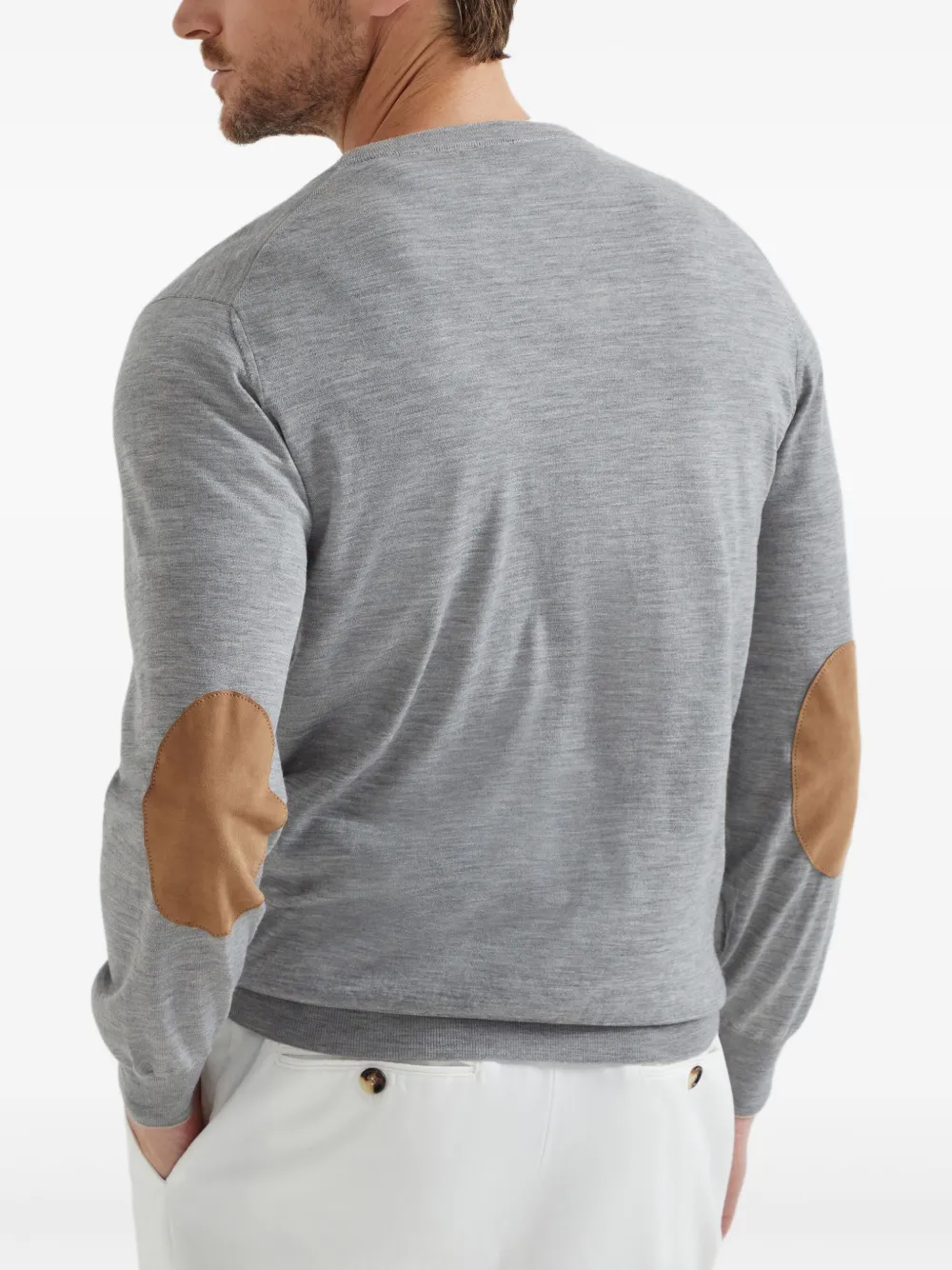 Джемпер с нашивками на локтях Brunello Cucinelli, серый