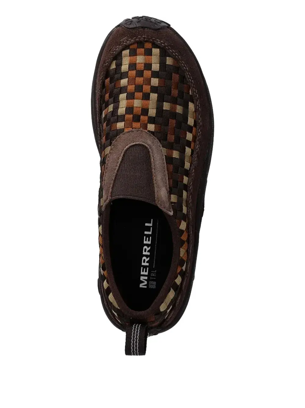 Коричневая плетеная текстильная замшевая панель, резиновая подошва, язычок для вытягивания