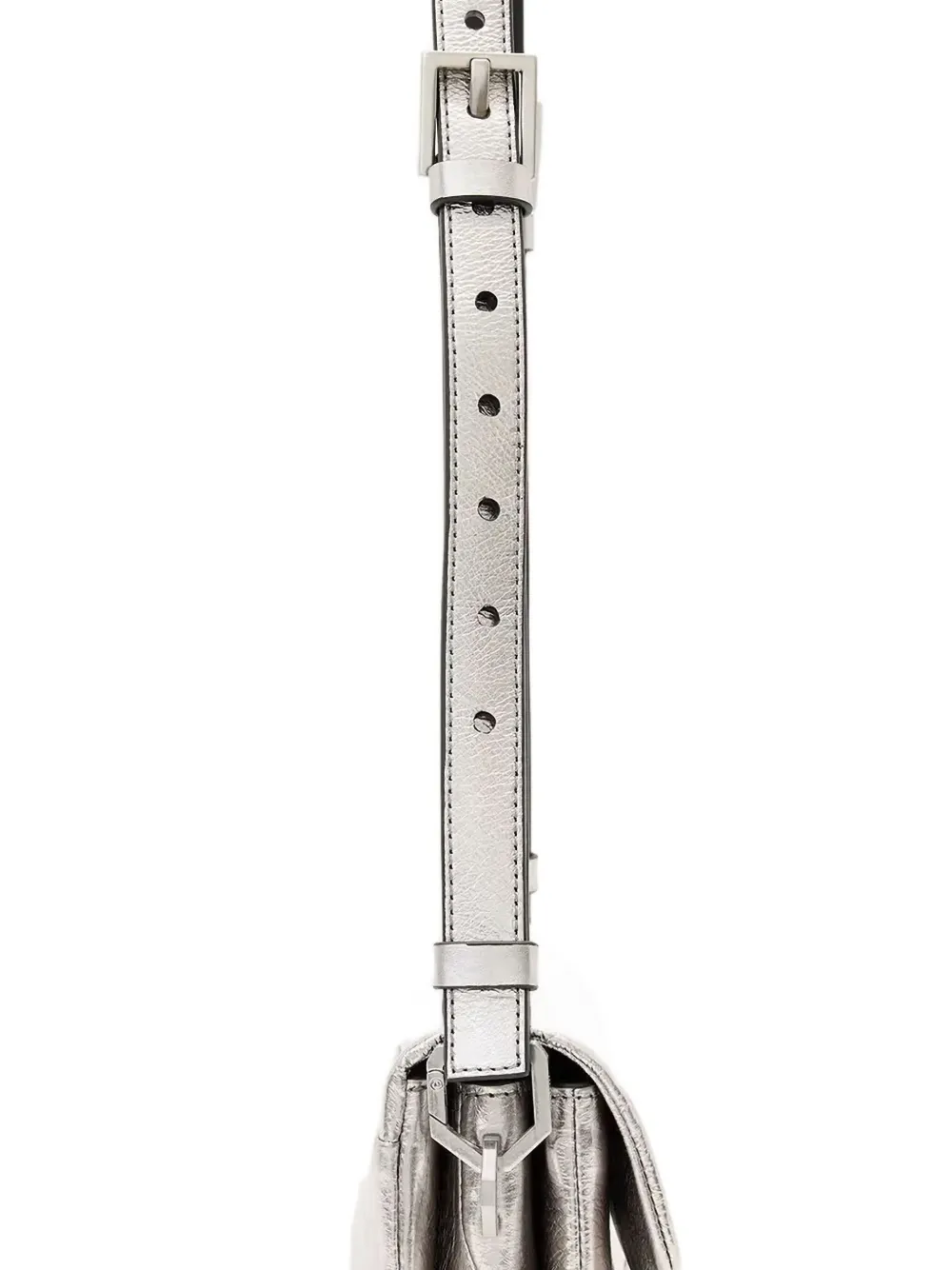 Регулируемый ремешок из серебристой металлической кожи, застежка на пряжку, клапан с откидной крышкой