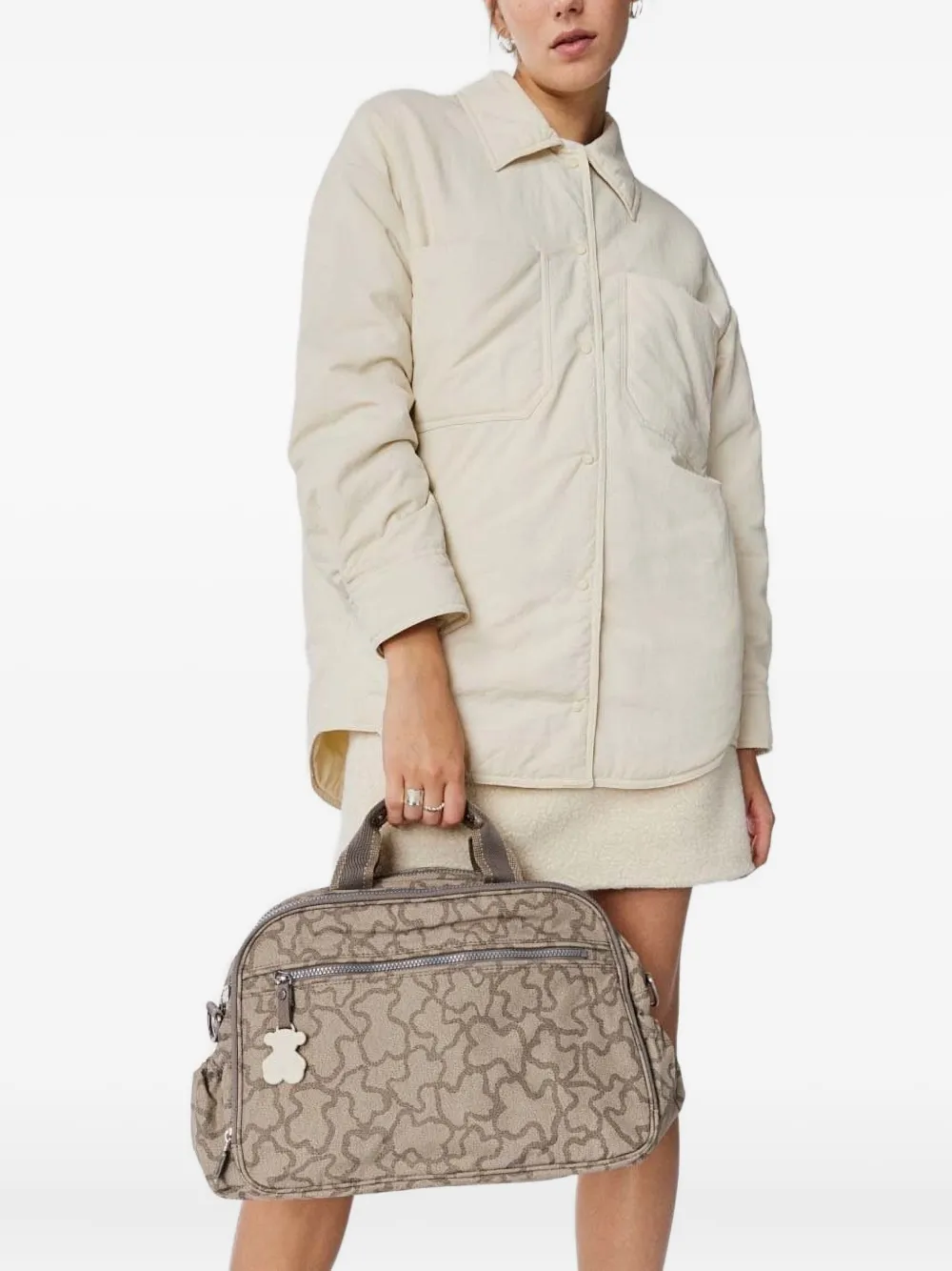 Верхняя ручка с принтом каменного медведя, съемный плечевой ремень, застежка-молния, внешний карман на молнии