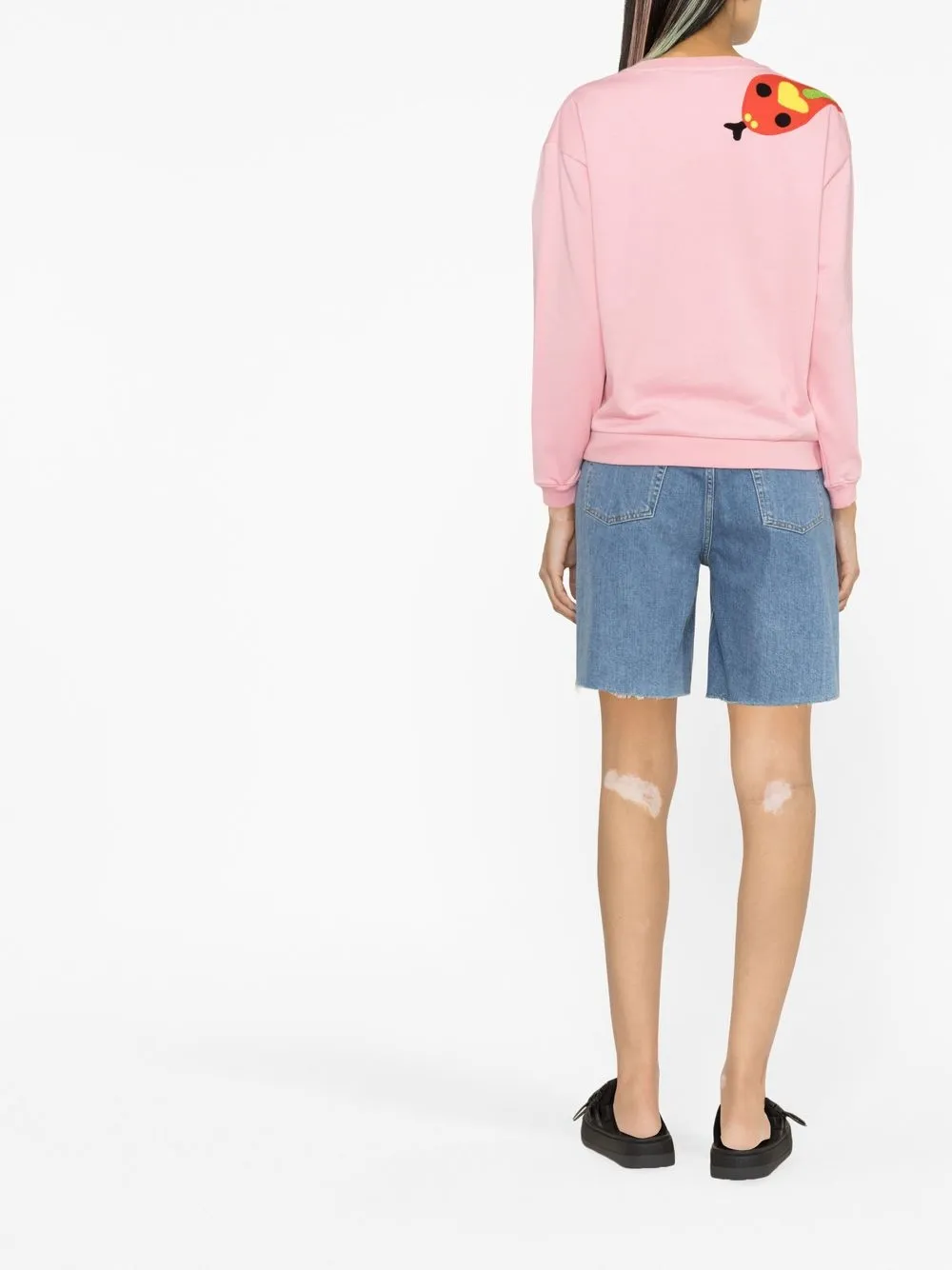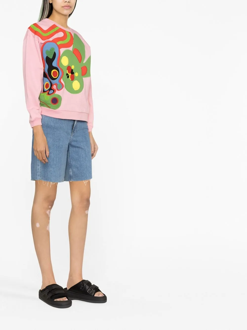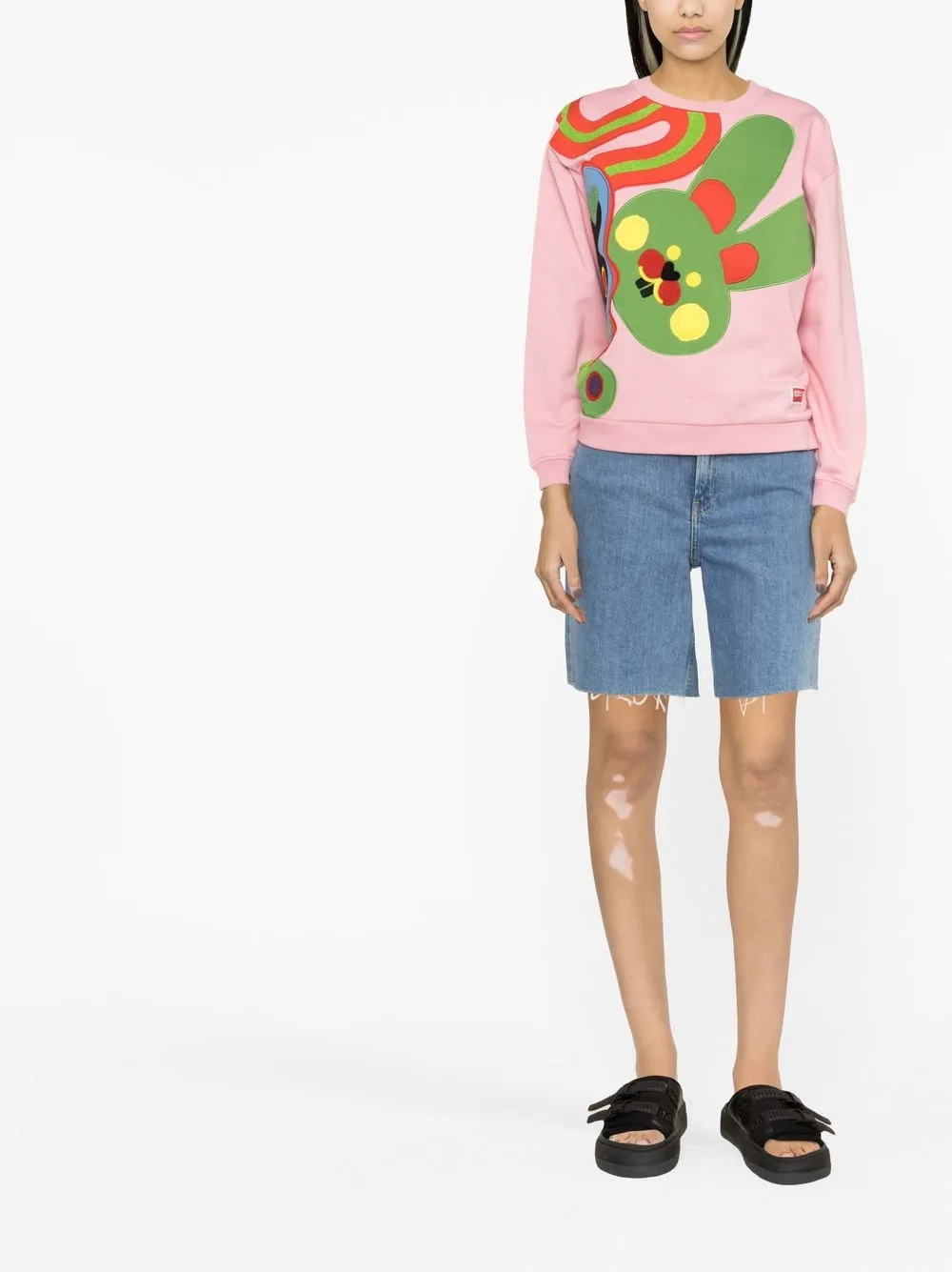 Розовый, разноцветный, хлопок, вышитый узор, логотип сбоку, круглый вырез, длинные рукава и отделка в рубчик.