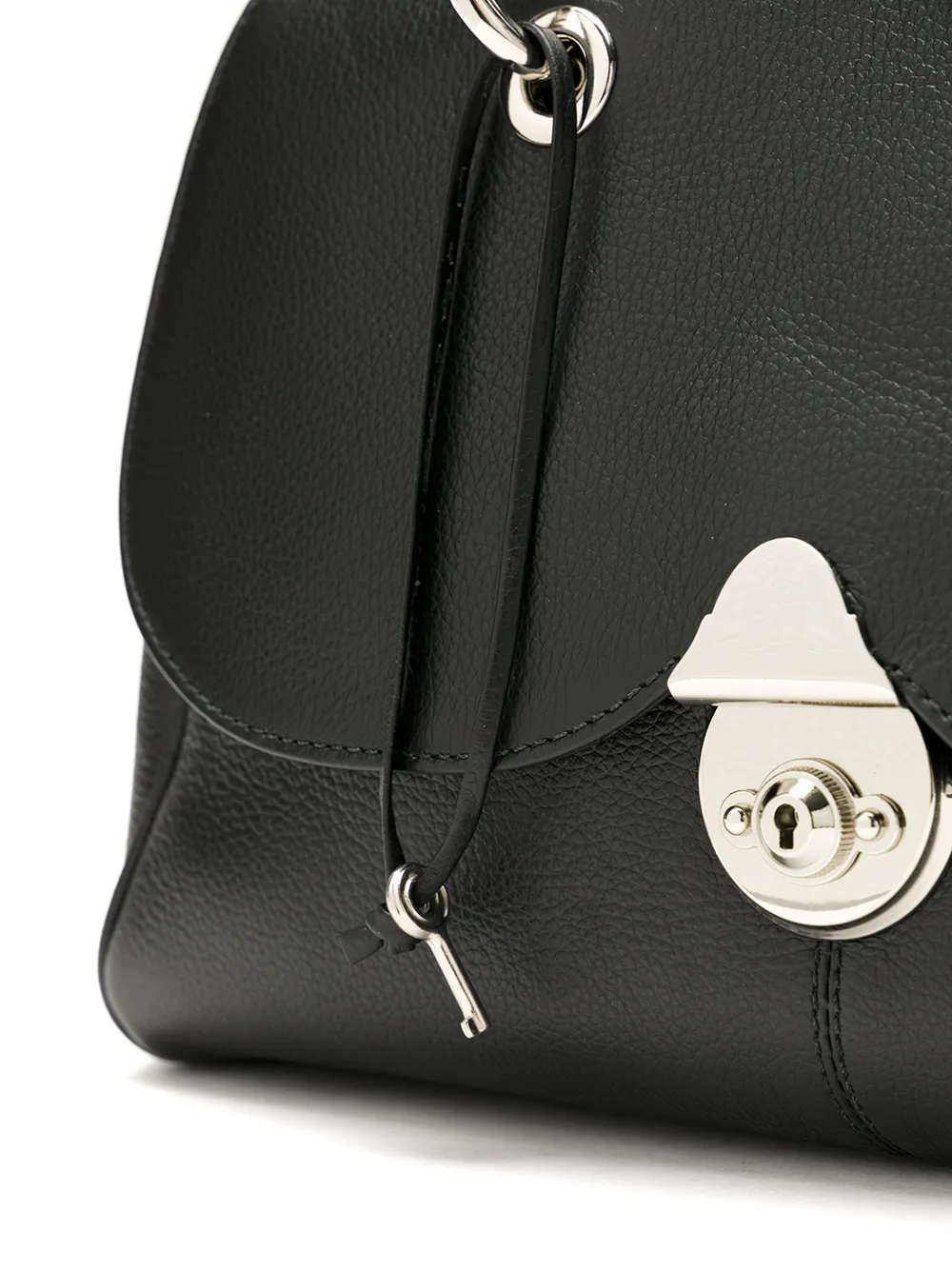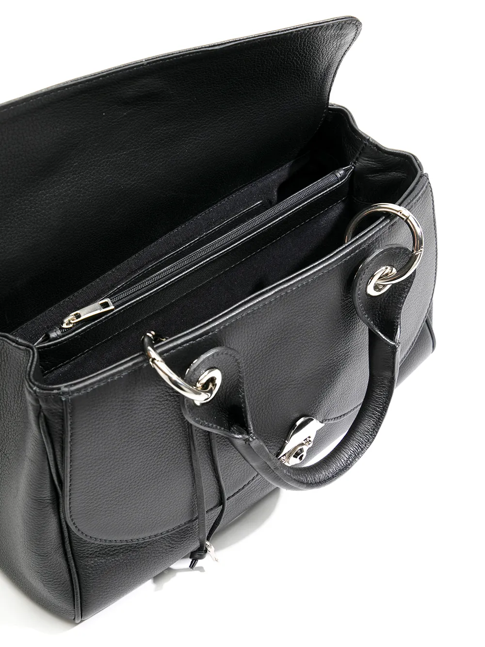 Сумка-тоут Kian от Sarah Chofakian. Верхние ручки, серебристая фурнитура, внутренний карман на молнии, съемная лямка на плечо, зернистая фактура кожи и застежка с висячим замком. Цвет: черный.