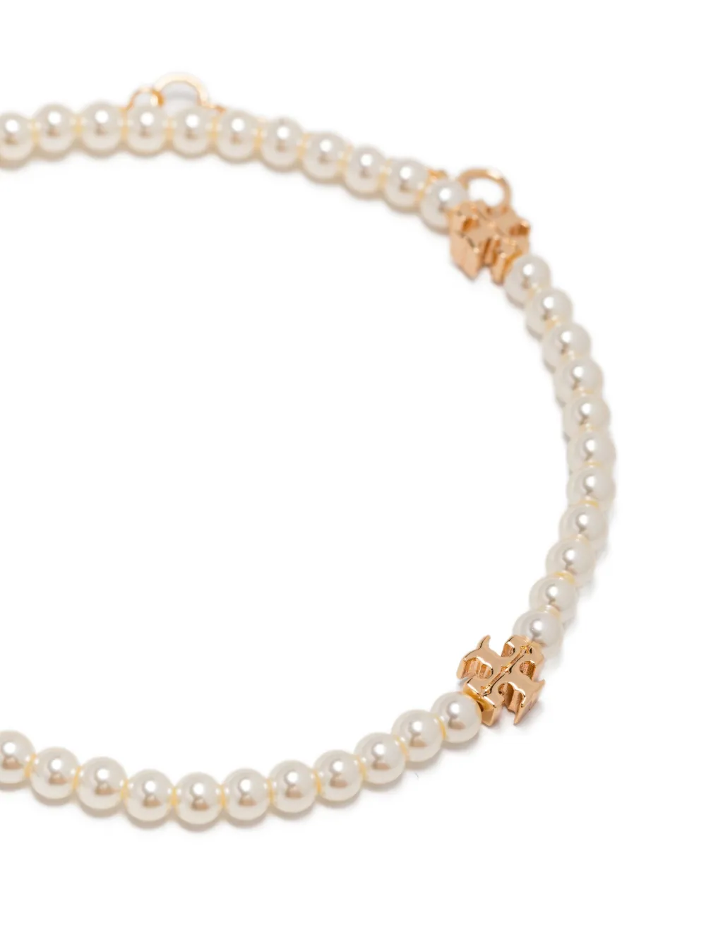 Застежка-карабин из искусственного жемчуга золотистого оттенка с тремя подвесками-логотипами
