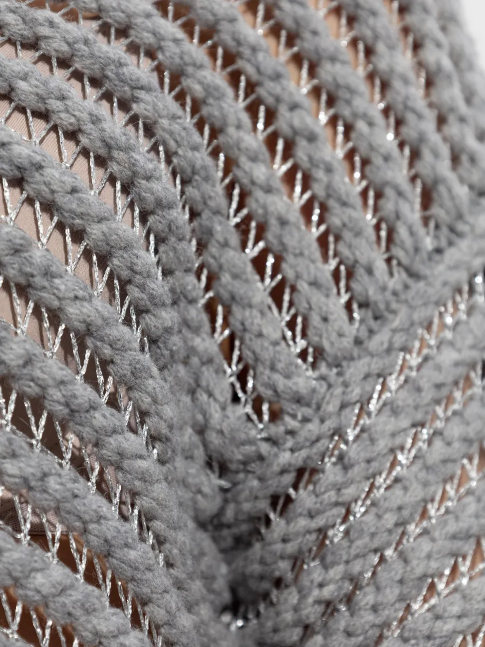Серый круглый вырез с открытой вязкой
