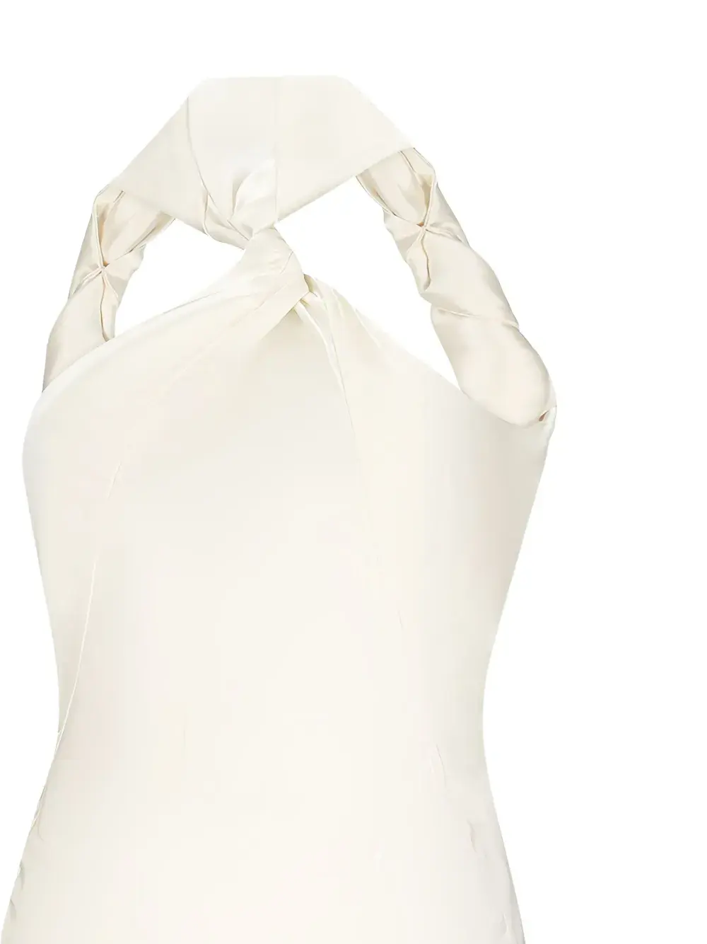 Беловато-белый топ с халтер-воротом, перекрученной отделкой, открытой спиной, без рукавов