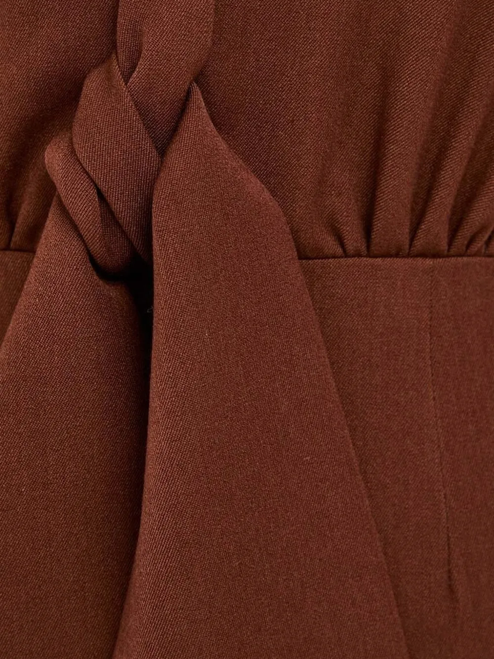 Коричневый V-образный вырез спереди, длинный рукав, декоративный узел