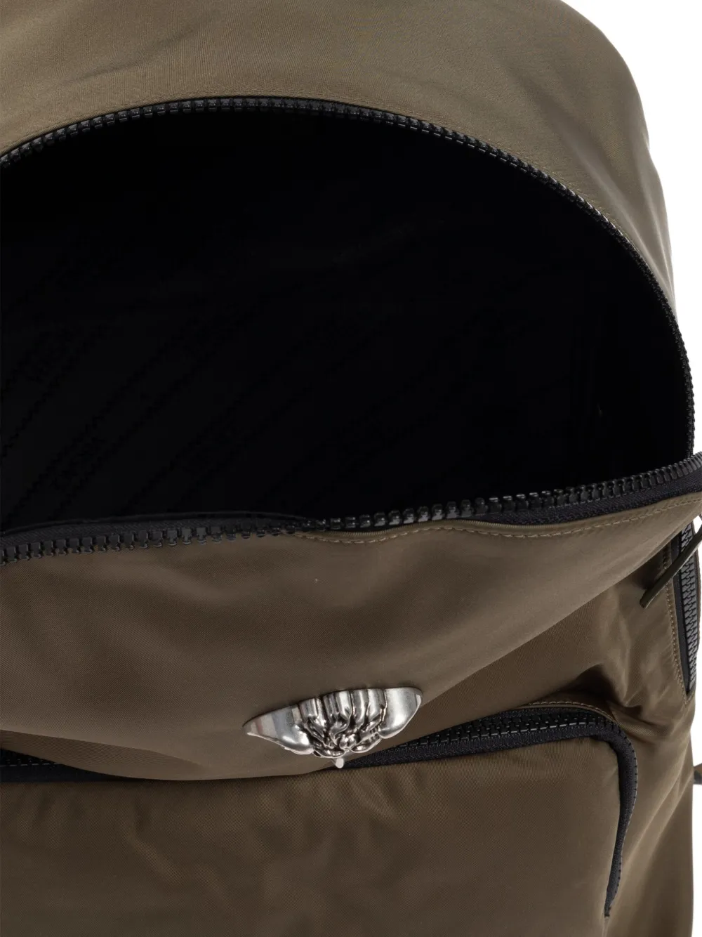 Оливково-зеленая отделка в виде головы Медузы, верхняя ручка, застежка-молния, лямки с мотивом Greca, регулируемые лямки, передний карман на молнии.