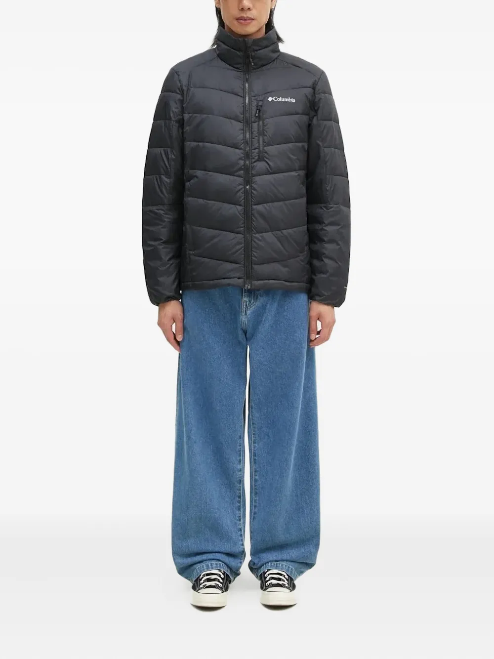 Черная шевронная прострочка, застежка-молния спереди, высокий ворот, два кармана на молнии, всепогодная термоотражающая подкладка
