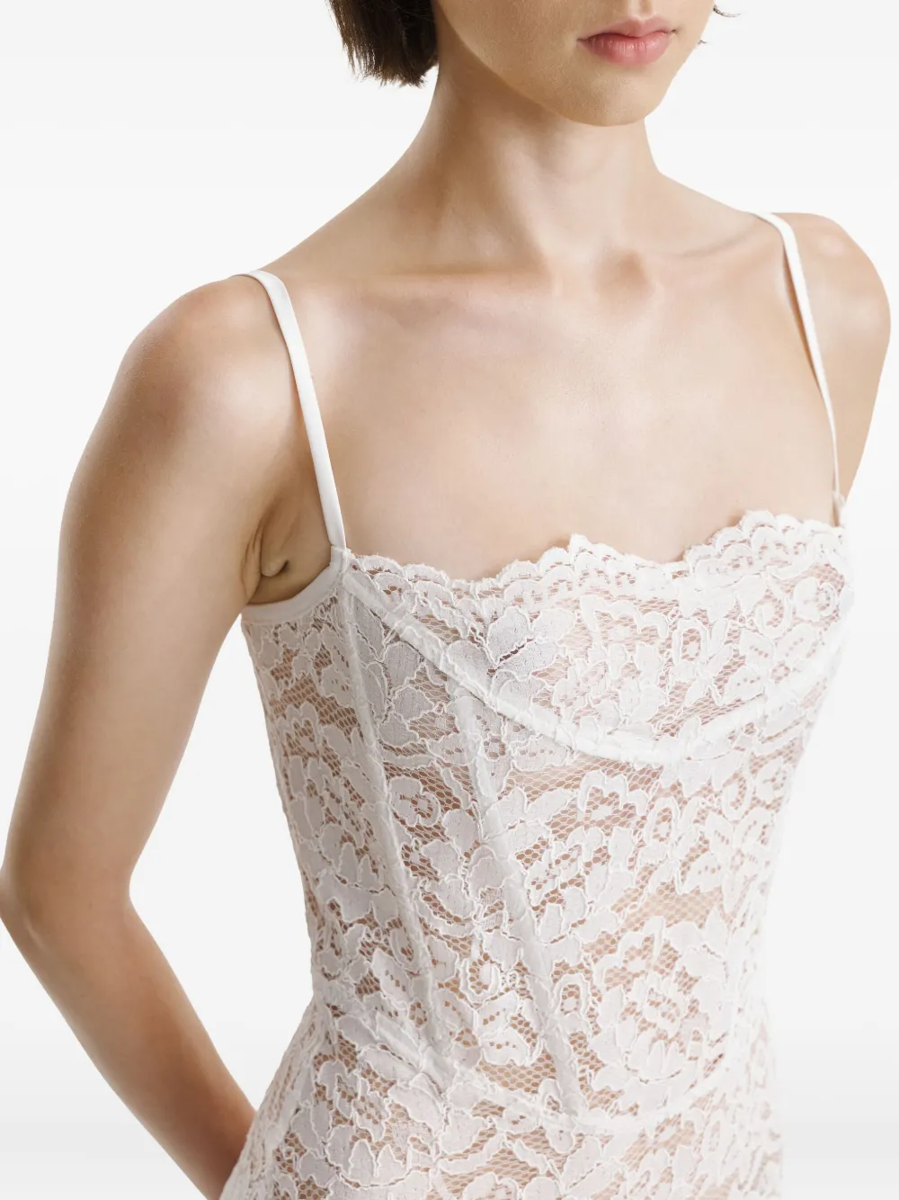 Корсет из белого цветочного кружева, лиф на тонких бретельках, прямой подол