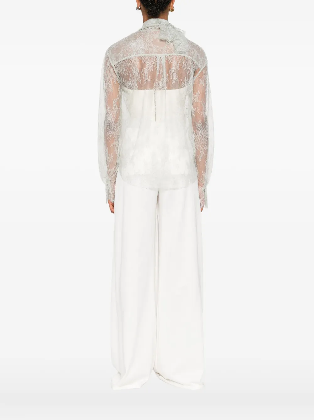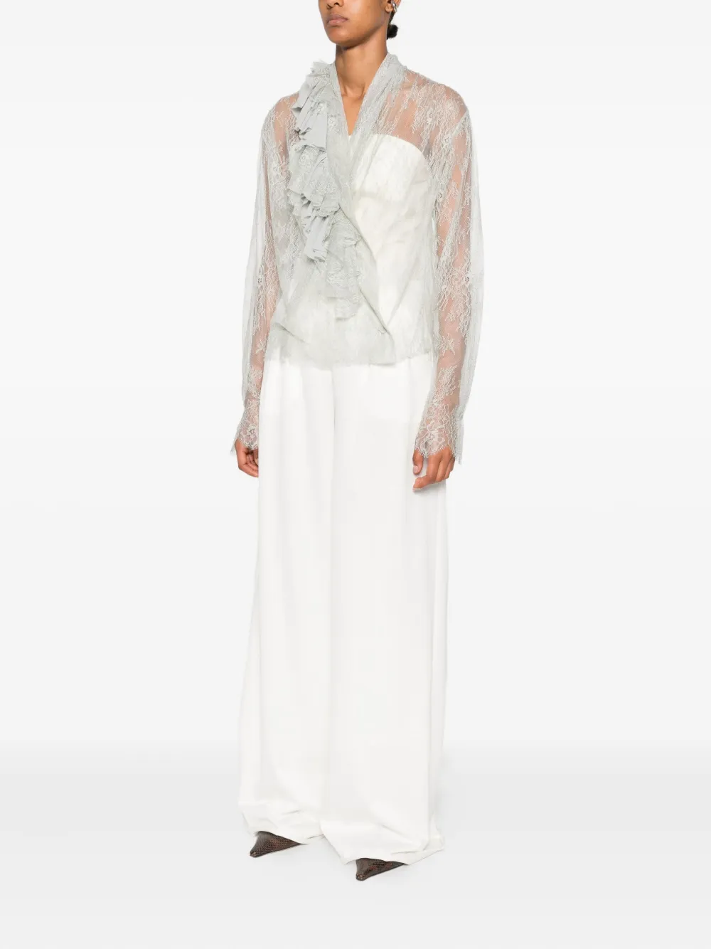 Кружевной топ с оборками Alberta Ferretti, зеленый