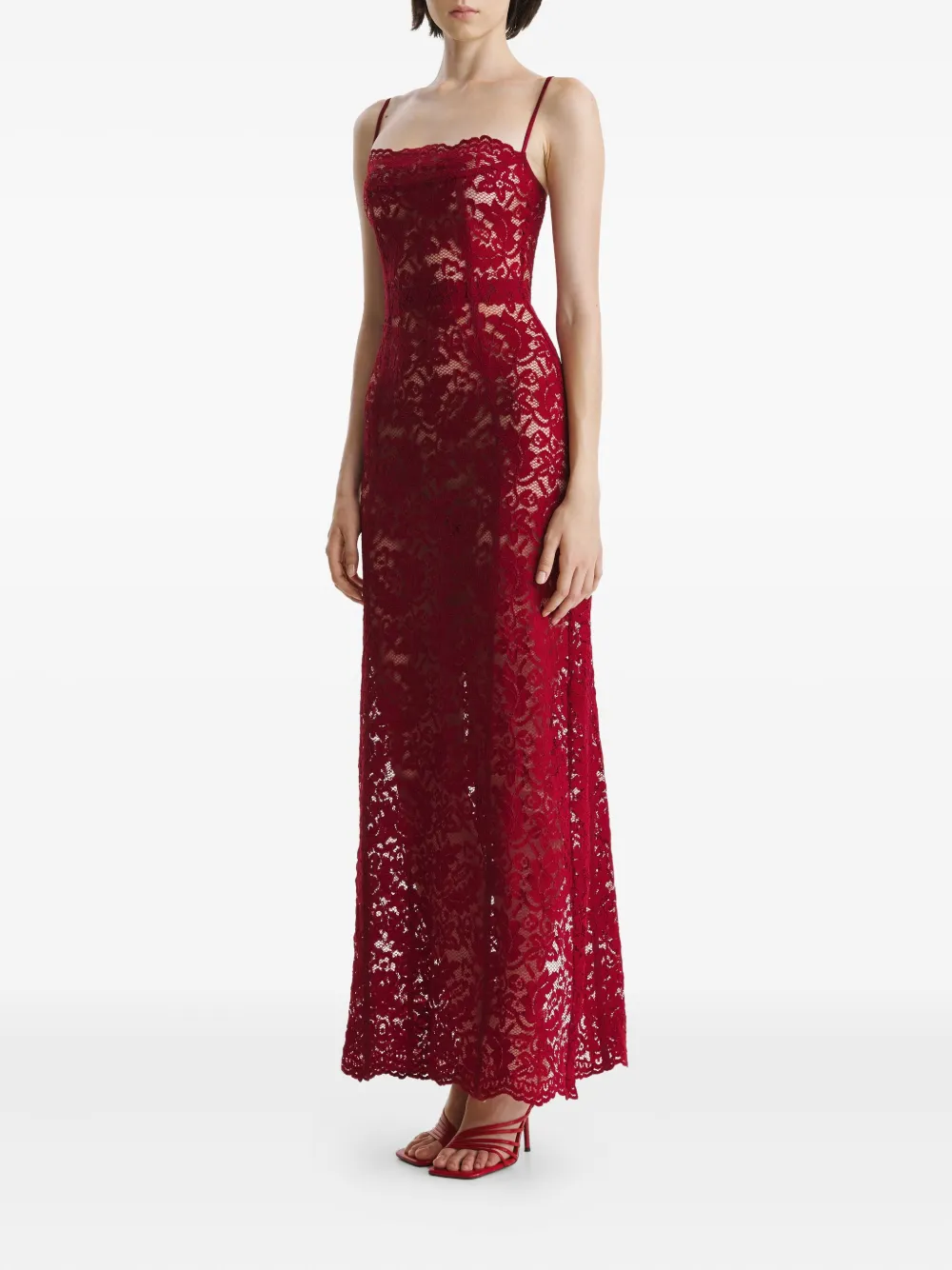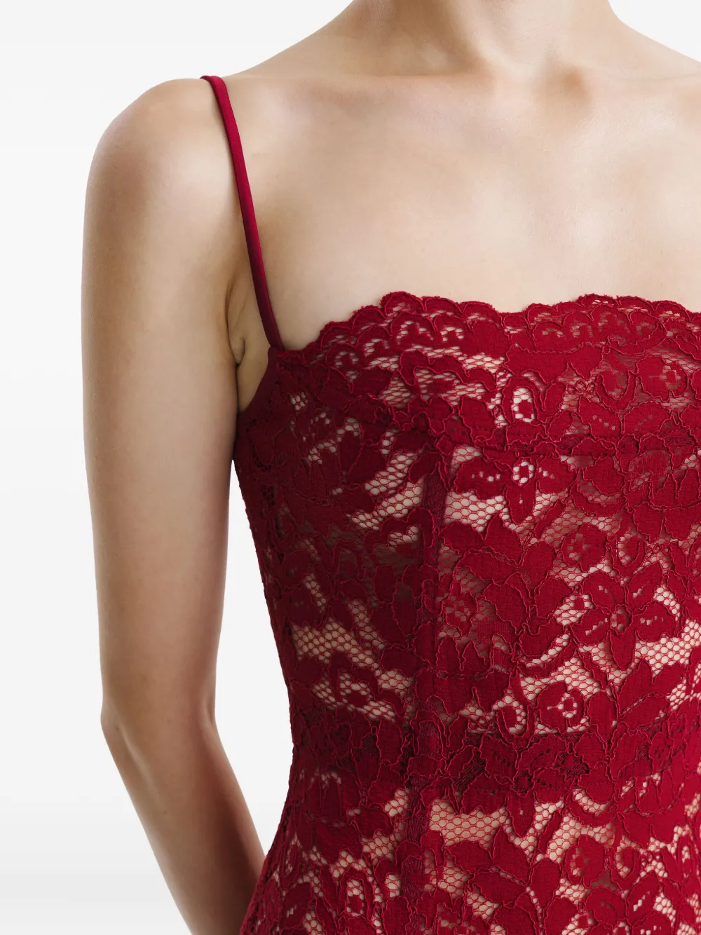 Кружевная ткань бордового цвета, тонкие бретельки, прямой вырез