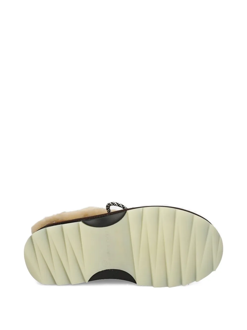 Подкладка из коричневой овчины, шнуровка, замшевая резиновая подошва.