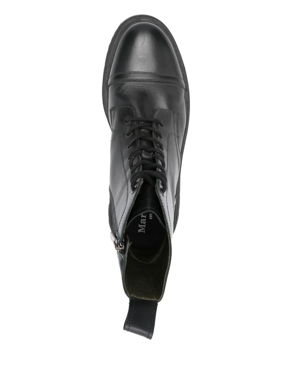 Черная шнуровка, круглый носок, застежка-молния сбоку.