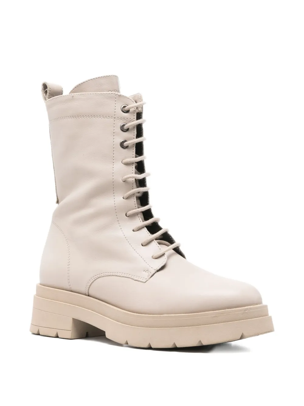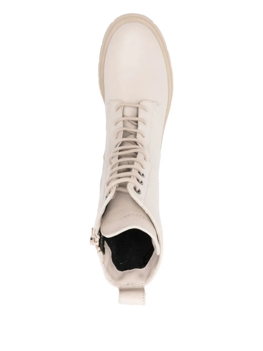 Бежевая шнуровка, круглый носок, молния сбоку, резиновая подошва.