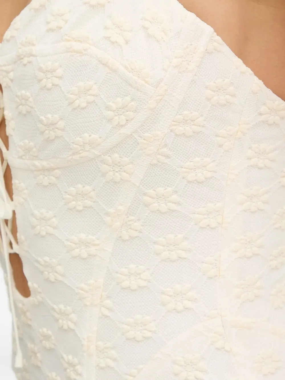 Юбка-клеш из цветочного кружева цвета слоновой кости со шнуровкой спереди