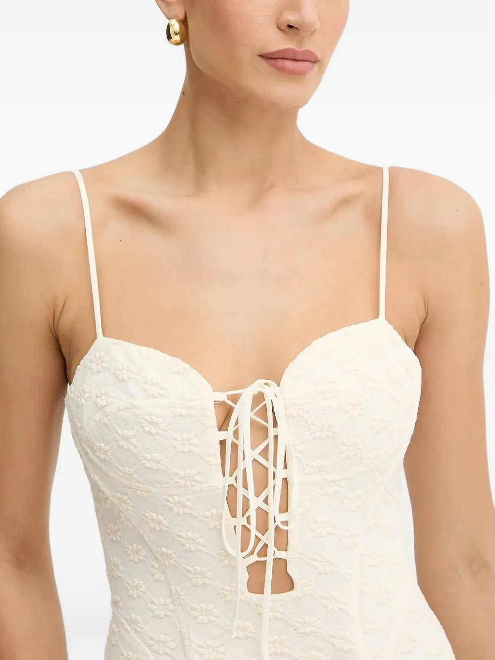 Платье миди с цветочным принтом и шнуровкой Bardot, белый
